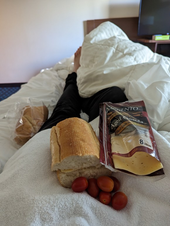 Walked to the REI to get a bear can, gas, and various smaller things. After that: Grocery shopping at Walmart. A lot of things there I’ve never seen before; walked up and down the aisles for a very long time looking for suitable looking food. Will result in interesting meals…