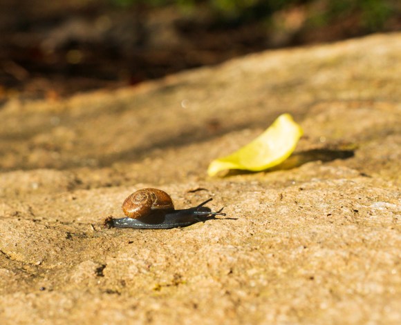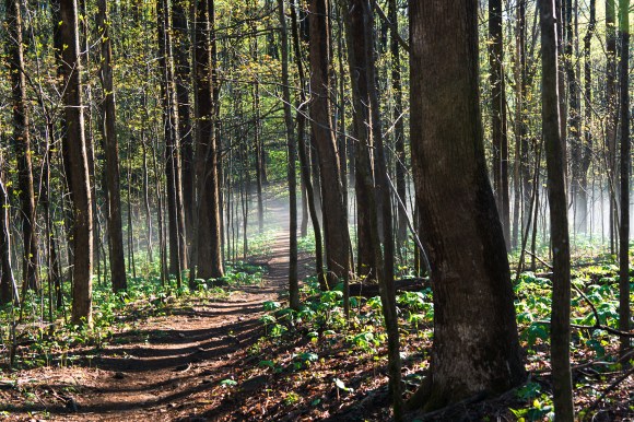 Seen on the way: Trillium flowers, snails, fog wafting over the trail.