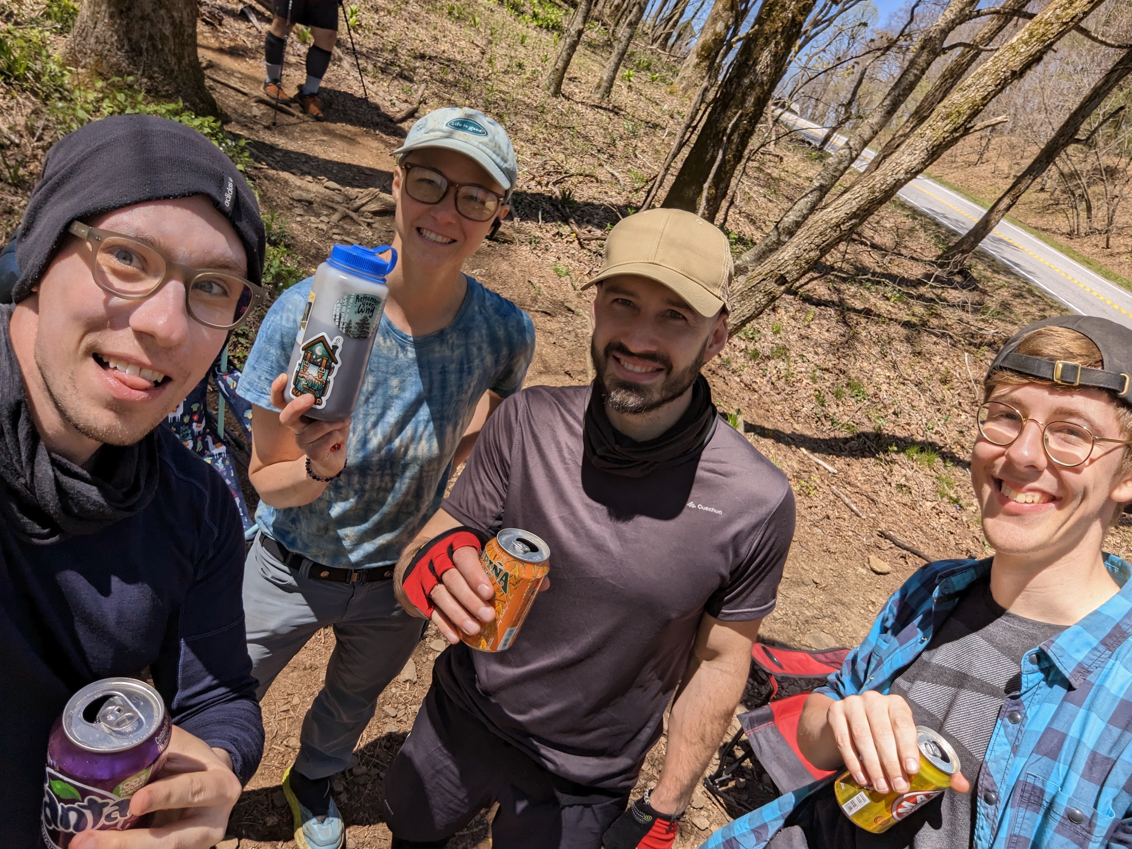 Encountered first proper Trail Magic in the form of camping chairs, a cooler with ice/softdrinks, snacks, and a trash bag. Spirits were lifted (not that it would’ve been needed, but we didn’t complain).