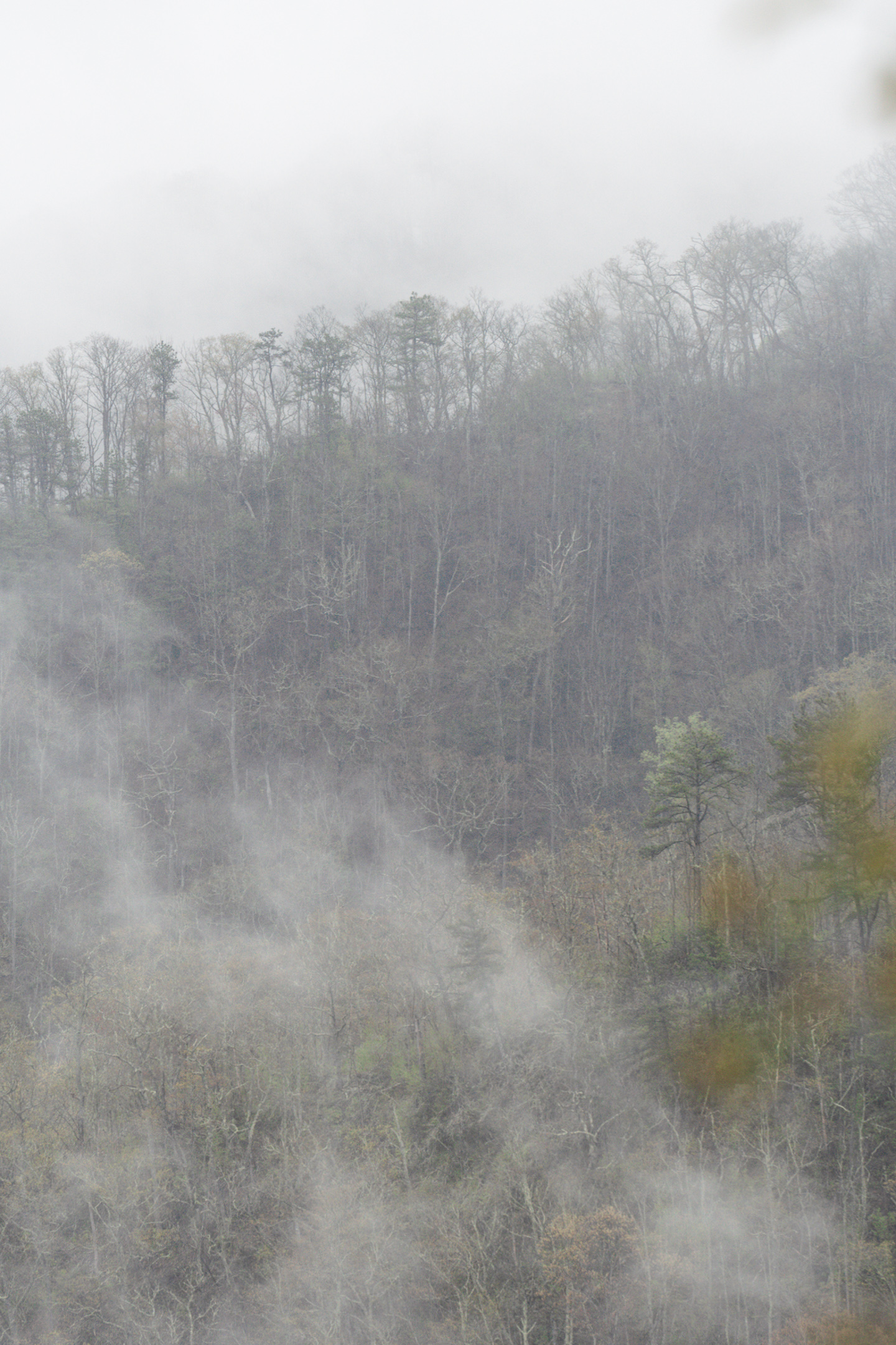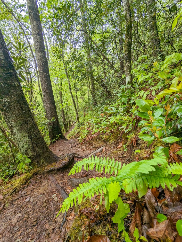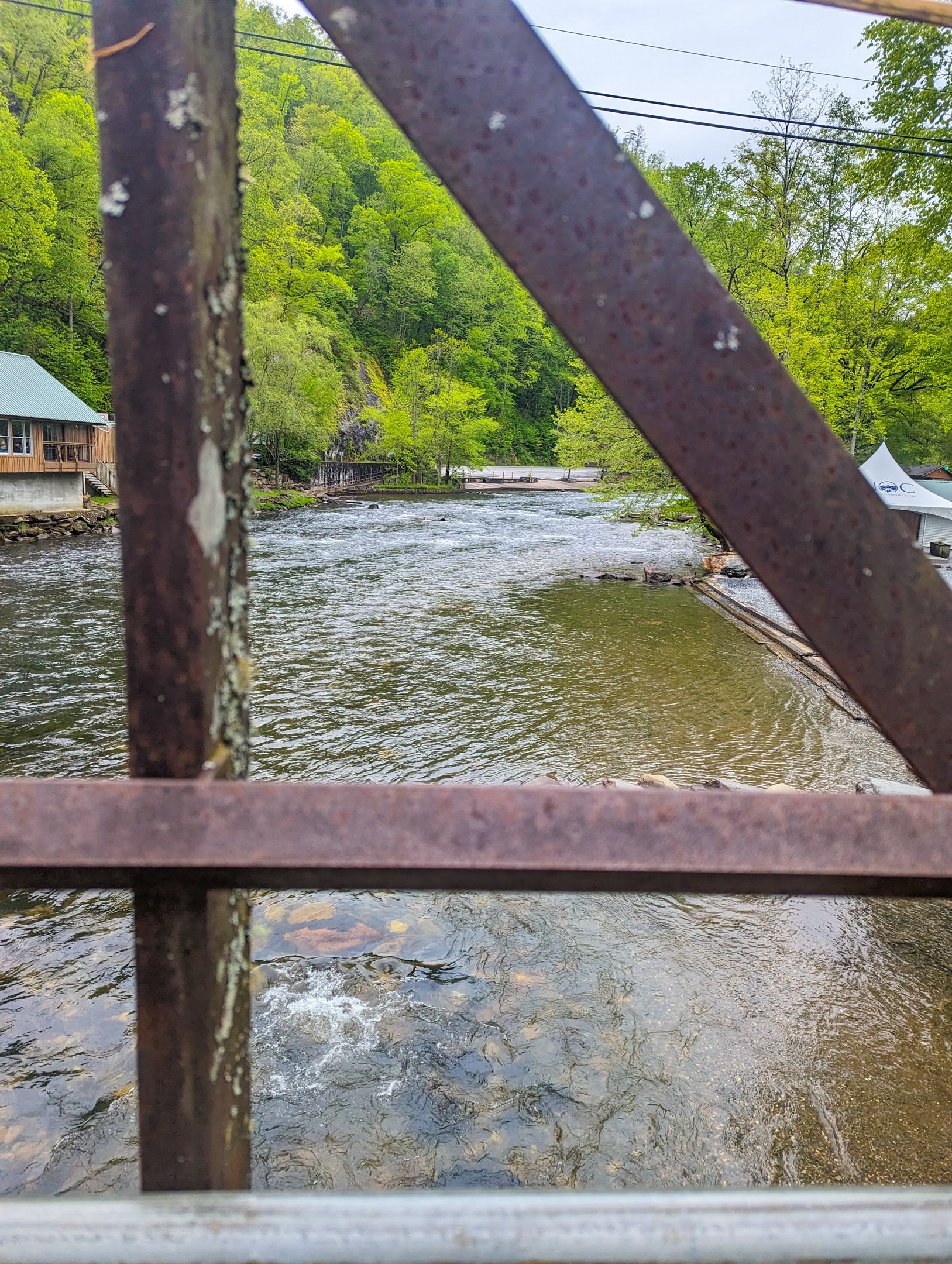 Big climb down from the ridge up at 5000 ft to the Nantahala Outdoor Center, which is way below 2000 ft. Vegetation in the valley is considerably greener and more lush than up there.