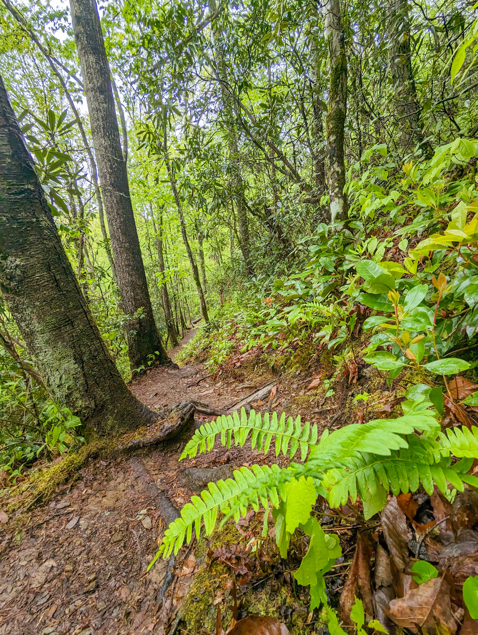 Started early at 9:00 just when the rain started. The trail soon turned into a stream. Avoiding puddles is a fruitless endeavor. Feet are wet all the time spent hiking.