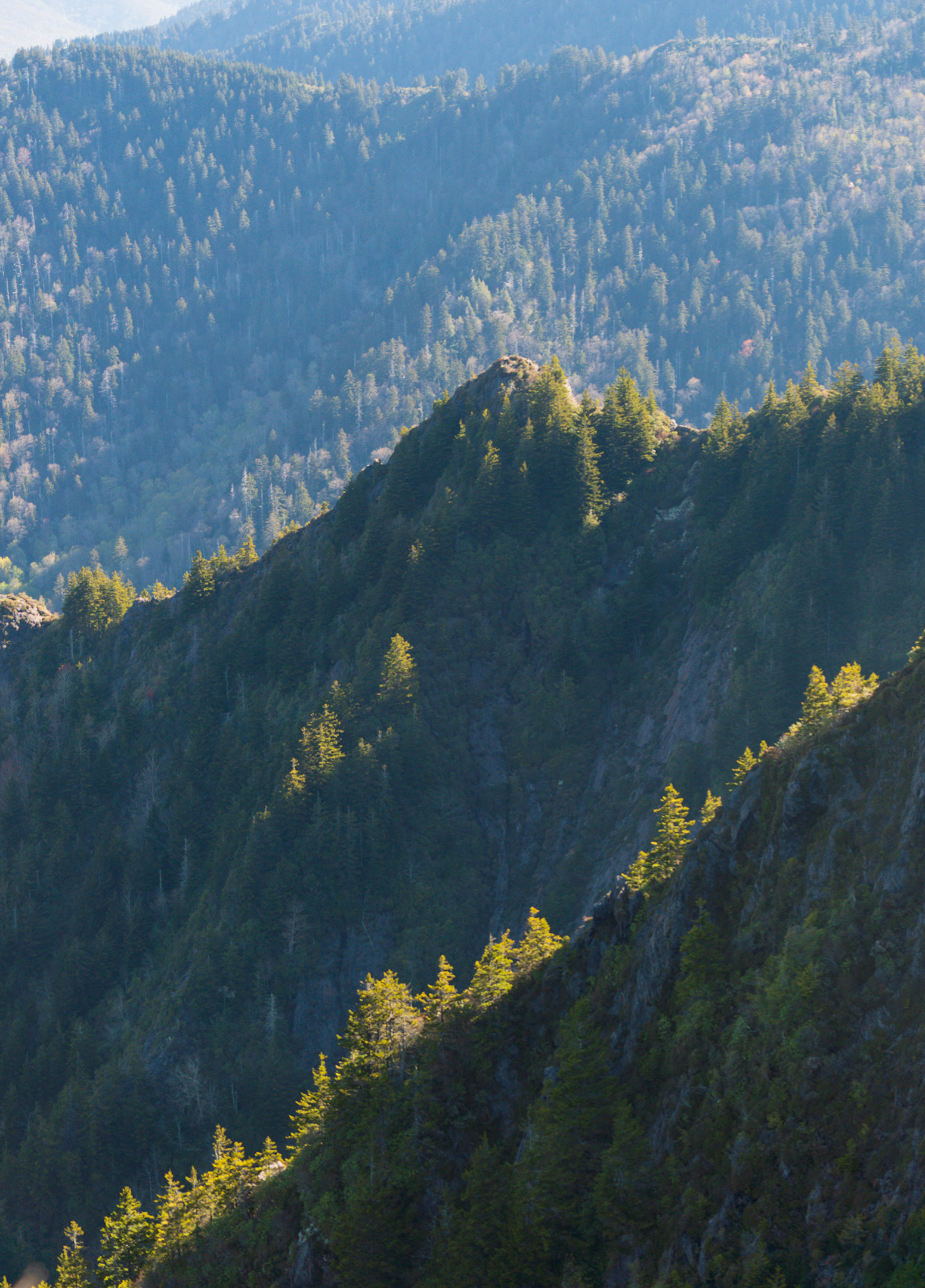 Due to rain forecasted for tomorrow afternoon we decided to make a big push to Cosby Knob Shelter twenty miles ahead. That could get us out of the Smokies by then. Started early, put in the miles. First twenty mile day! Almost all of it above 5000 ft, with a lot less wind than yesterday and sunny weather.