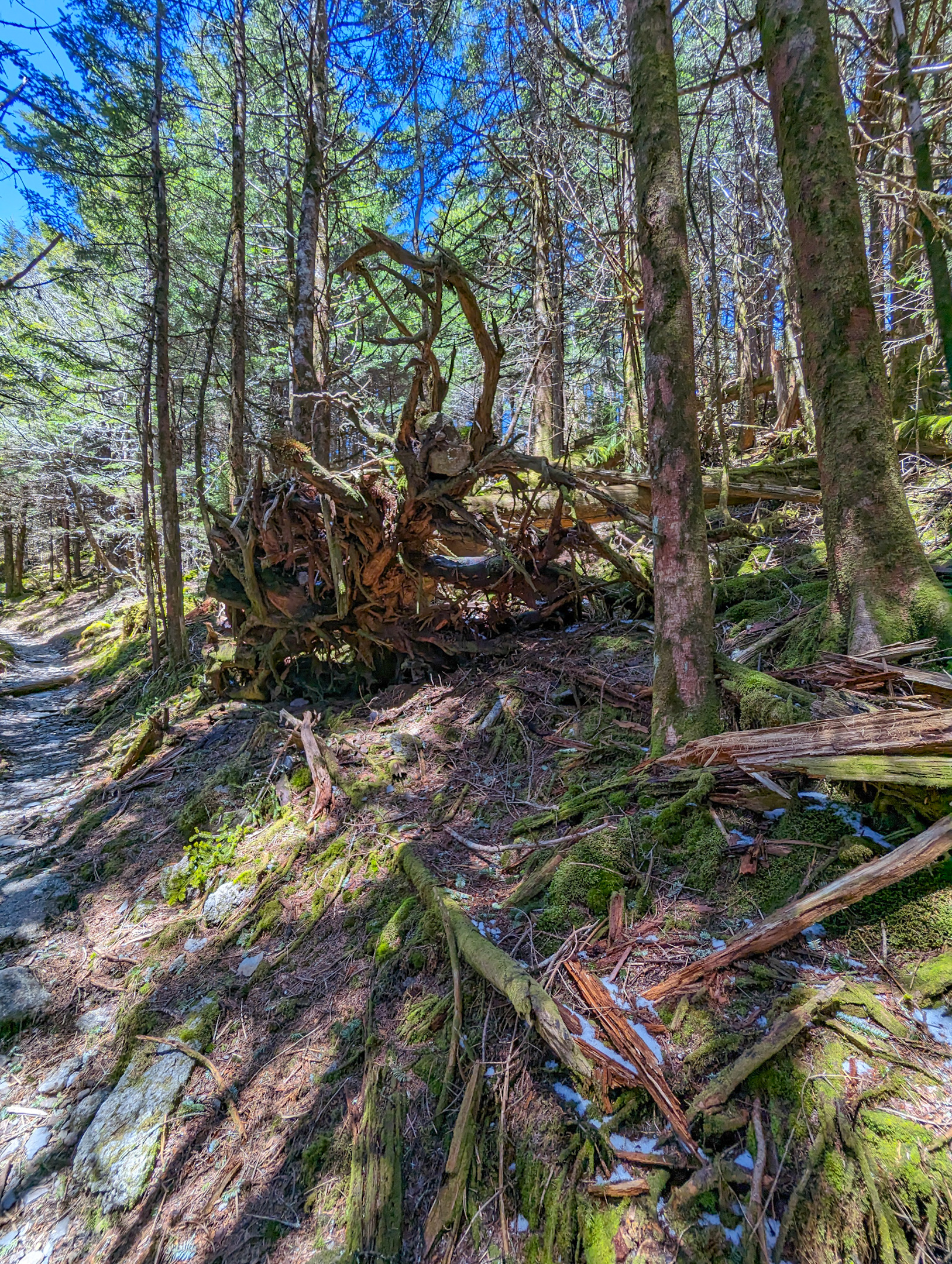 Along the way: Lot’s of ridgeline walking, views, snowy trails, more old growth forest.
