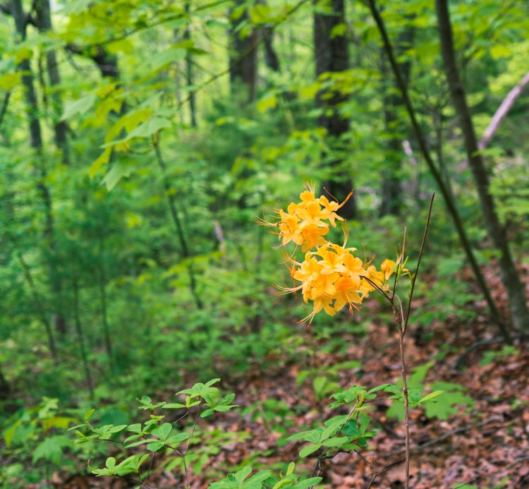 On the way: Views of the Smokies from Snowbird Peak, flowers, AT-signs in cut logs.