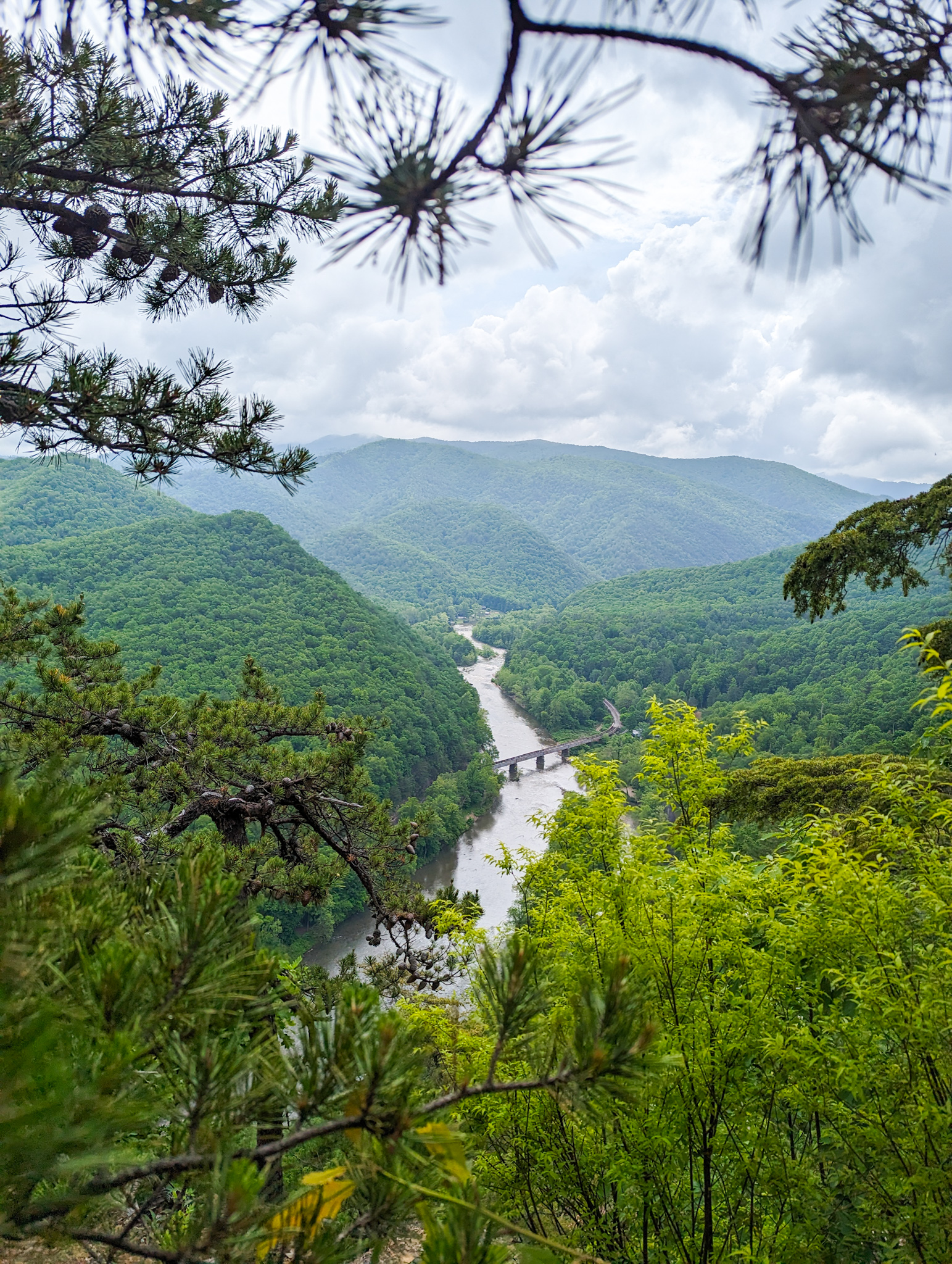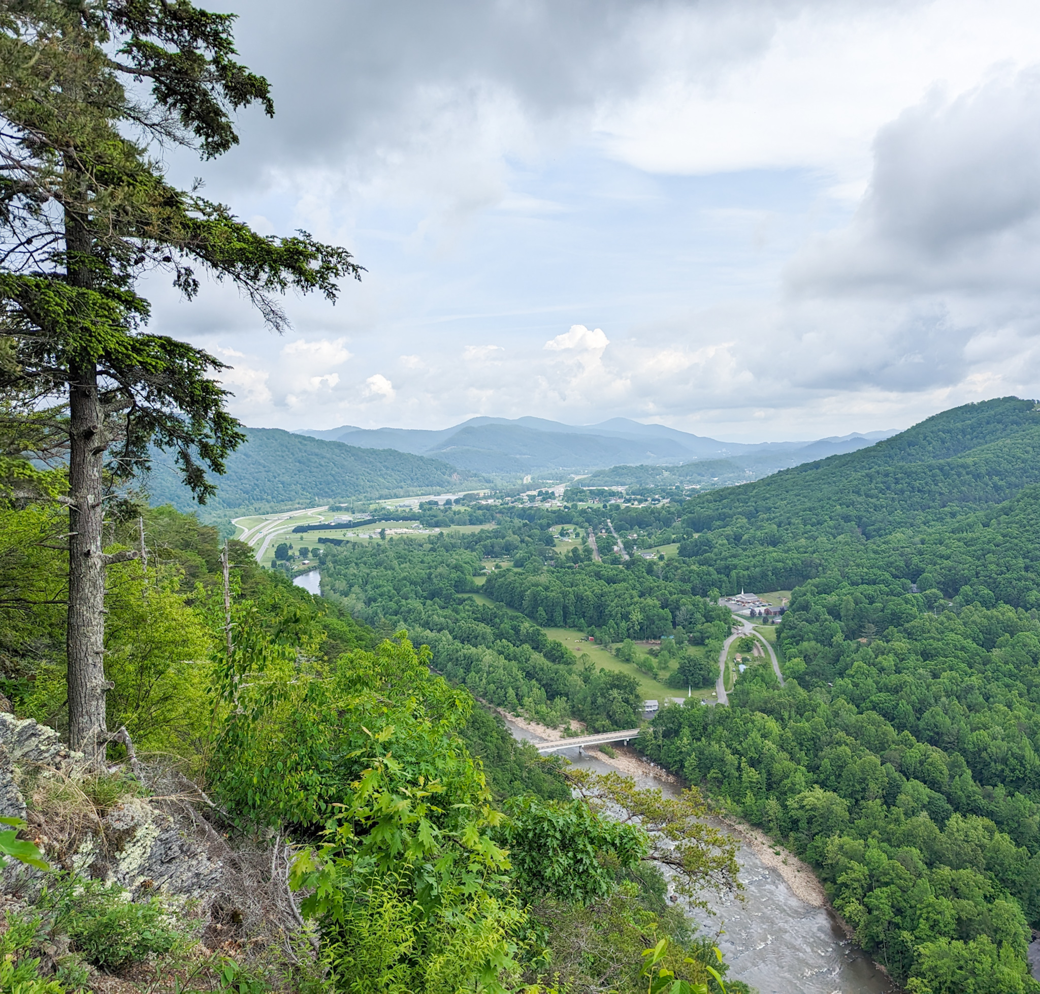 Just about six miles down to Erwin. Really good views of the Nolichucky River from up above. Everytime you come down into the valleys the change of weather, humidity comes as a slight shock.