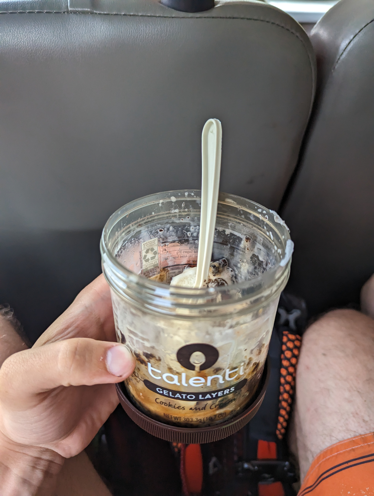 Hostel is right on trail; took the shuttle into town, resupplied and ate dinner at the supermarket deli. Chicken tenders, macaroni salad, a whole jar of Talenti (just for future cold soaking meals, of course). Got some free cake from people at the store. Fat and happy back to the hostel.