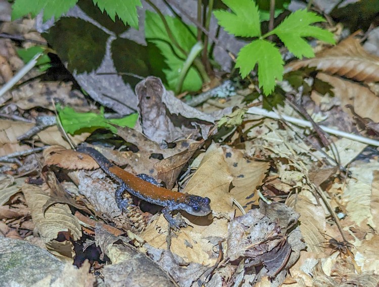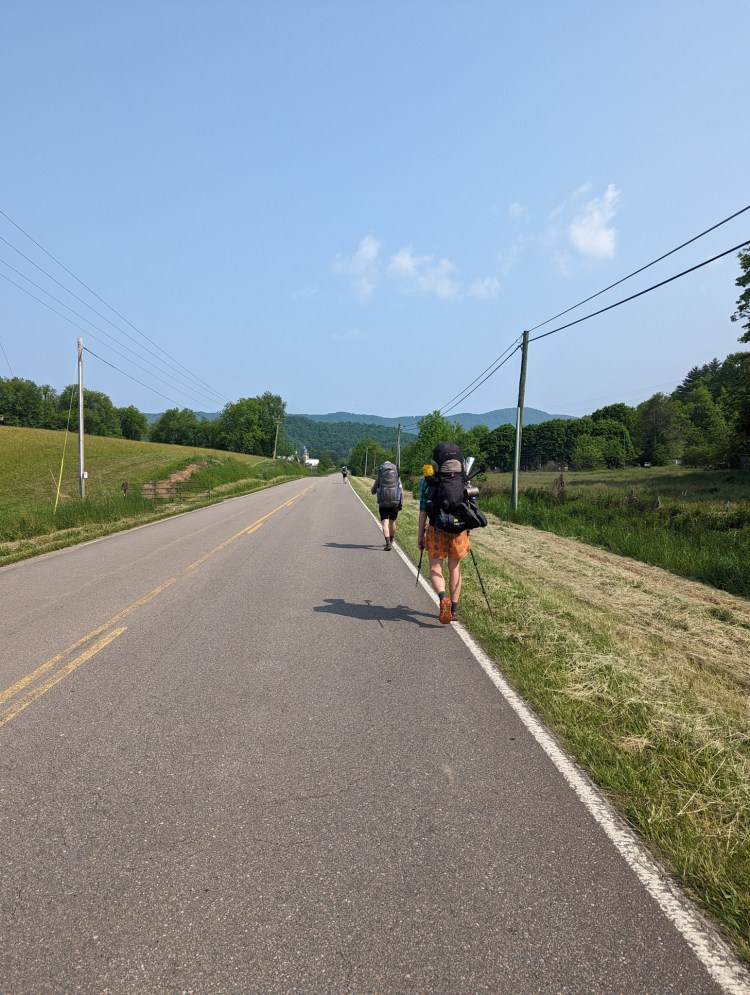 Got out of Damascus shortly after noon. Trail goes up to the Grayson Highlands, so the going isn’t so easy as the last couple of days. But nothing too serious.