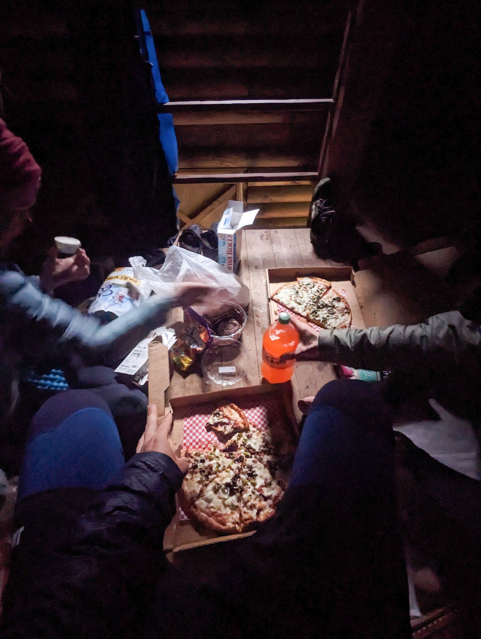 Arrived at the Partnership Shelter at 4:30 PM. Shuttled into Marion with Marty and Alex, a thru hiker/support driver (wife) team. Got pizza and snacks, which we brought back to the shelter for dinner.