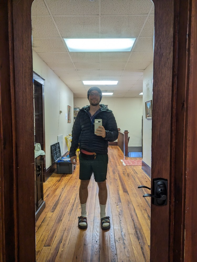 Bought a rain skirt and a new knife (with scissors!) at the outfitter below the hostel.
