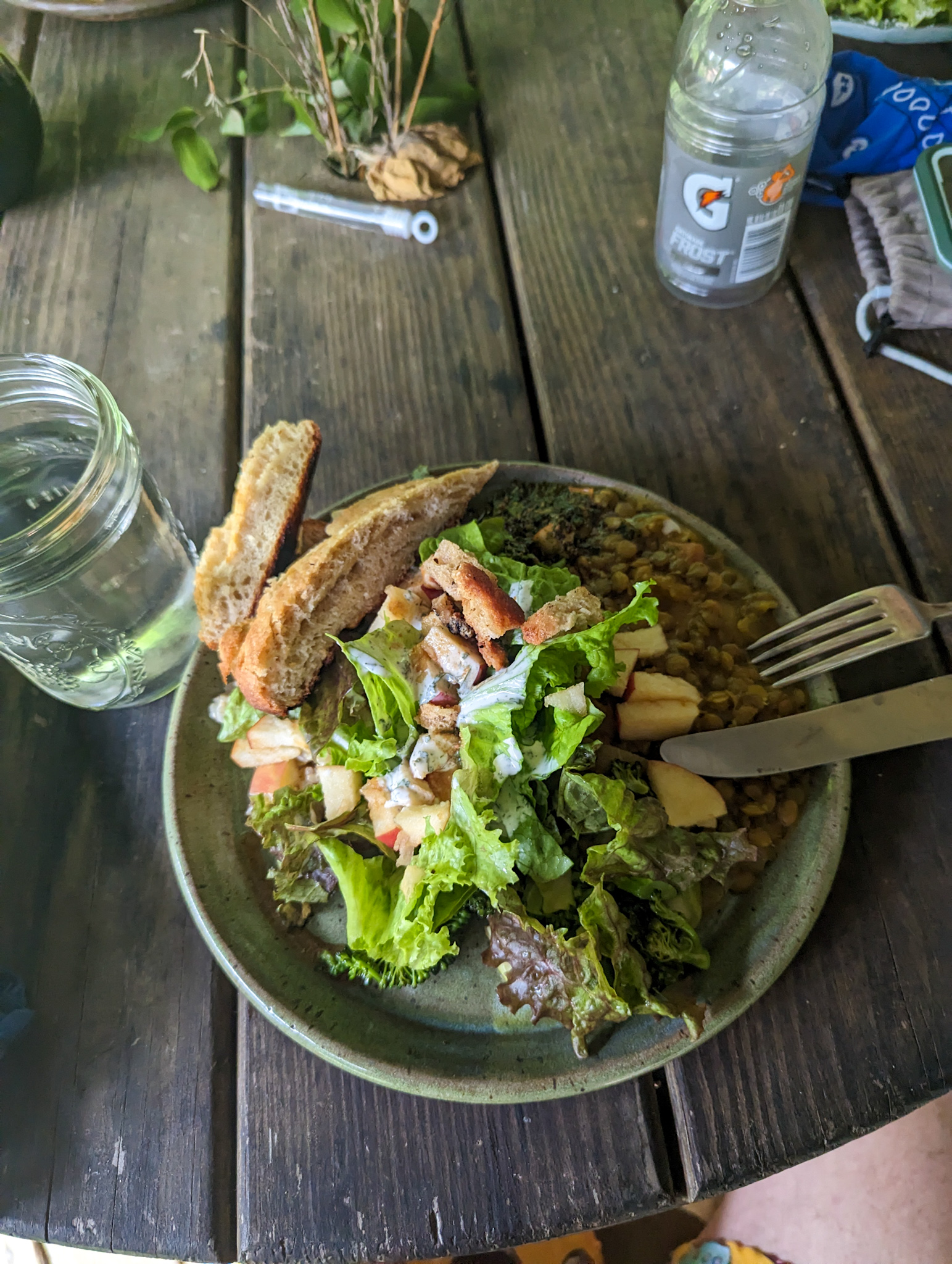 Ate probably too much, but the homemade food is just to die for. Lentils, rice, fresh bread, broccoli from the garden.