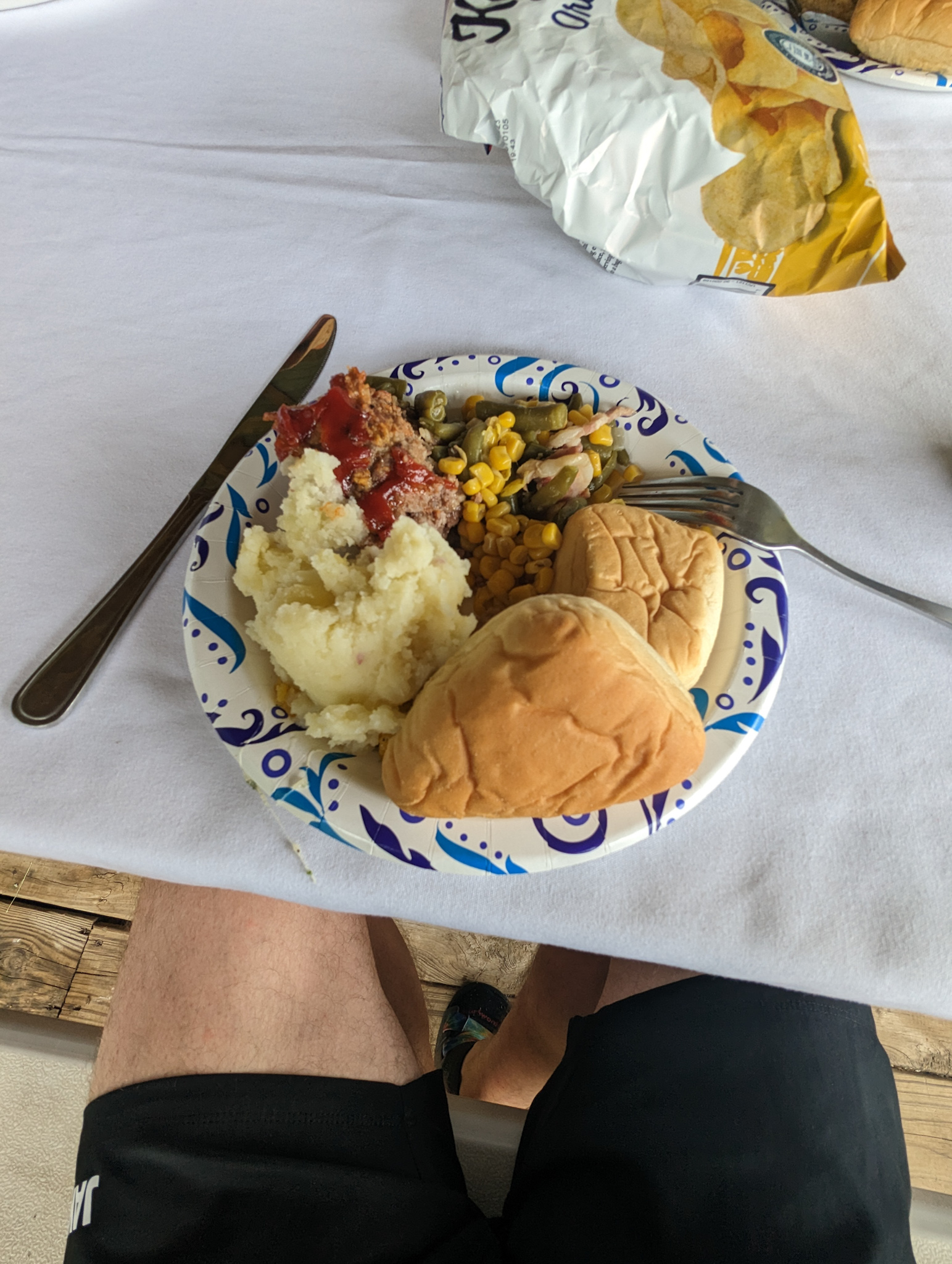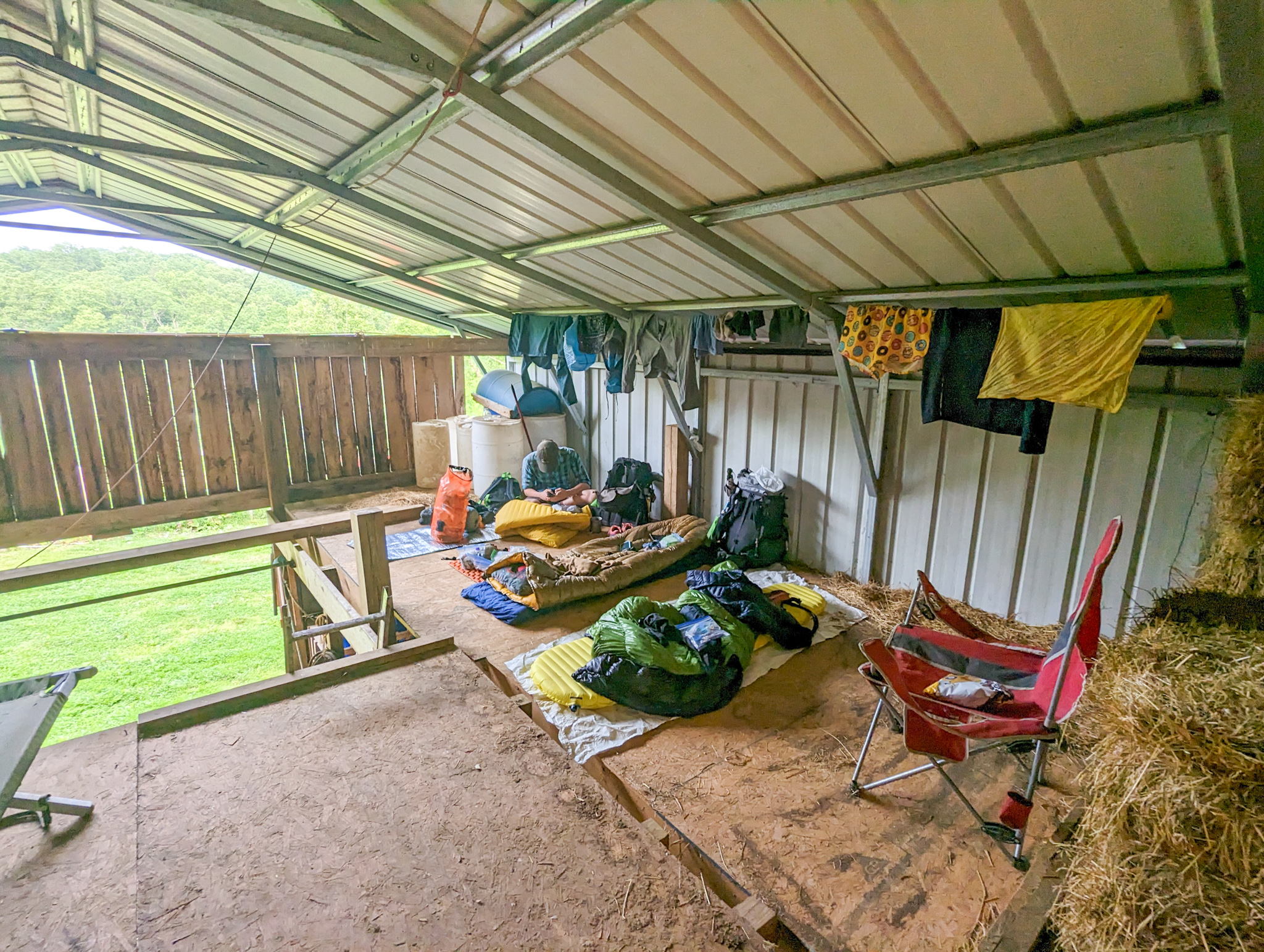 Got shuttled back by Broccoli Rob to Honey Buns farm, who had invited us to stay for the night. Set up camp in his barn. Home cooked dinner with Honey Bun and his mate Tulsa on his porch. Meatloaf made from homegrown beef, corn, beans with bacon, mashed potatoes, all made by Momma Honey Bun. All around great evening.