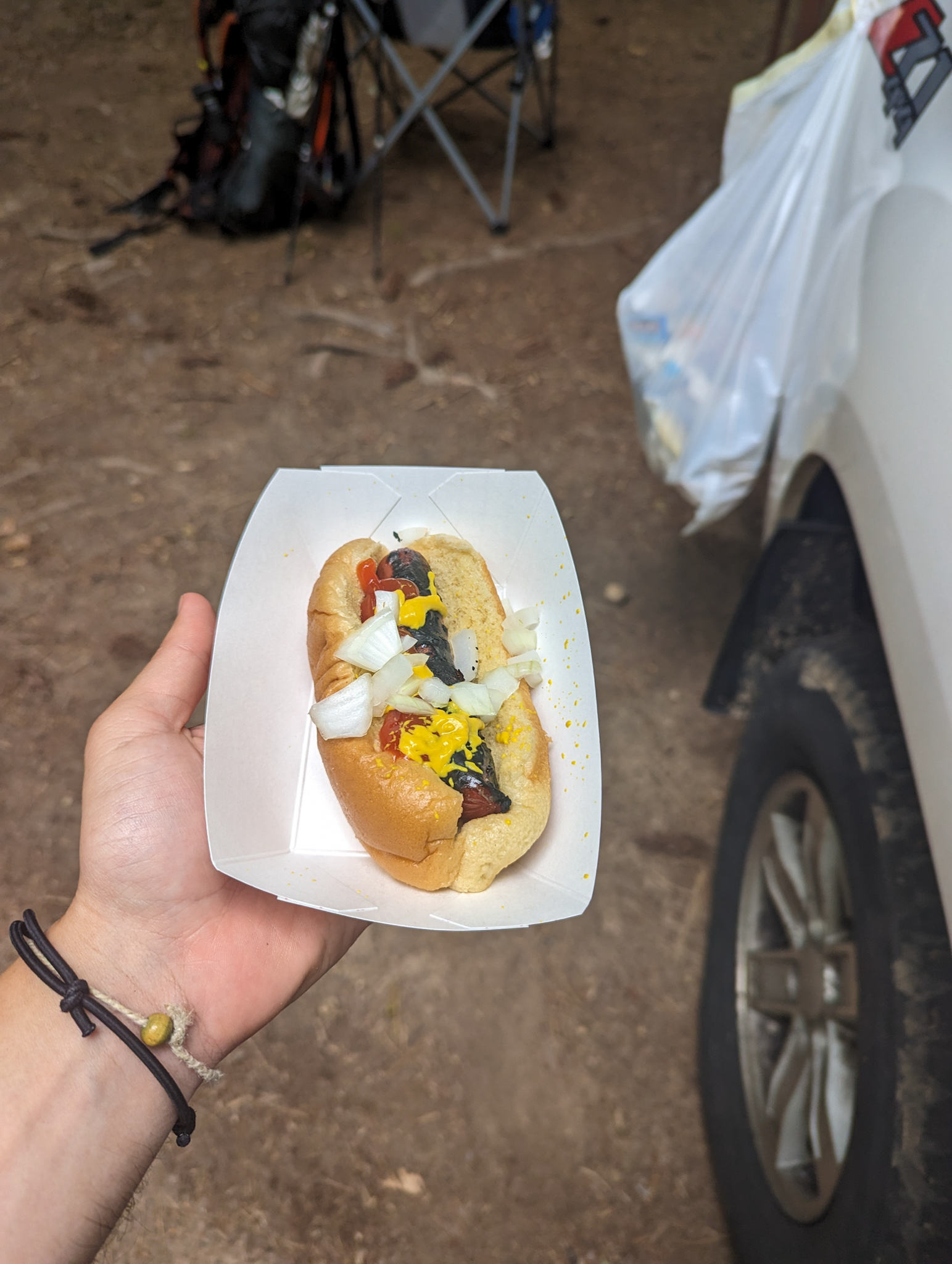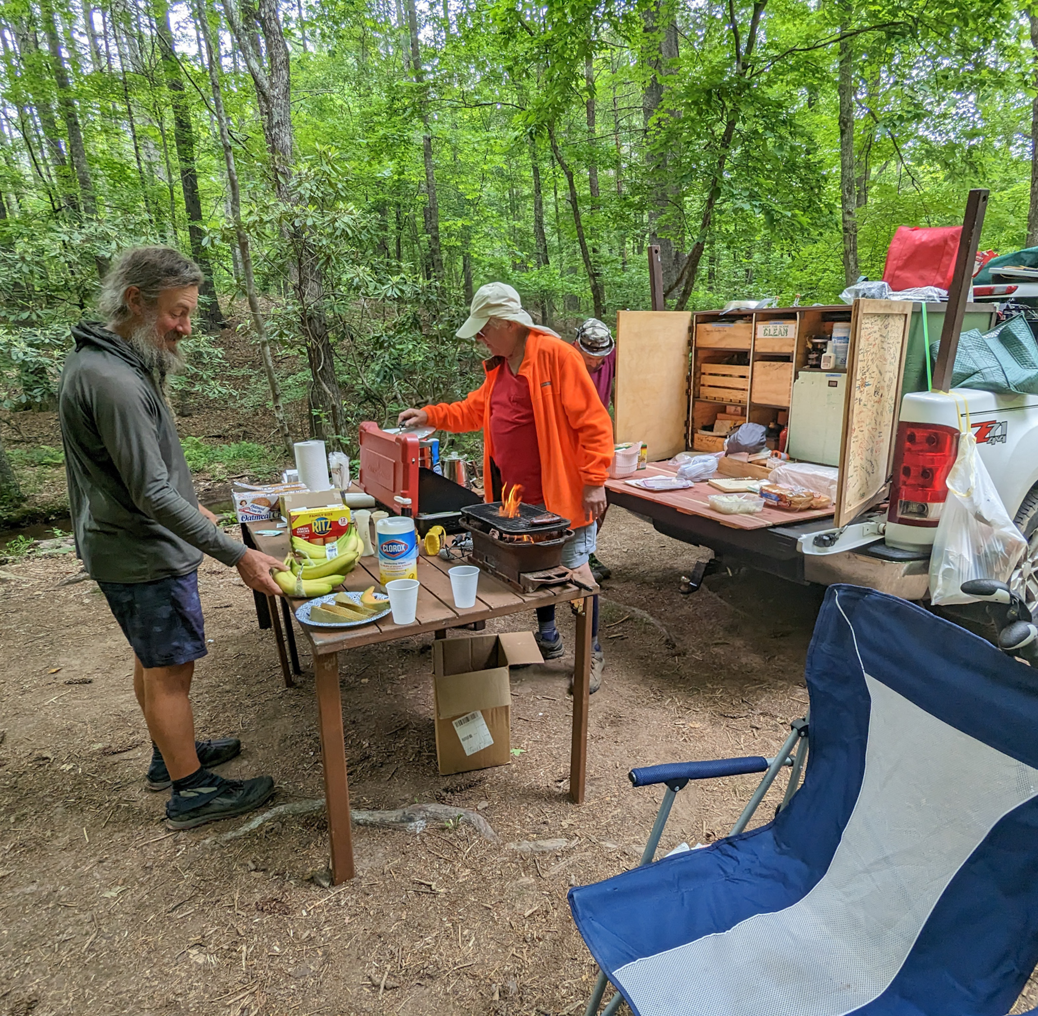 Between the ridges: Trail magic by Allan, who cooked hot dogs for hikers. Met Smokey Bear again (after Warrens), who is supporting the mom with 13 kids on trail. Also met Bubbles and Mississippi, who we haven’t seen in a long time.