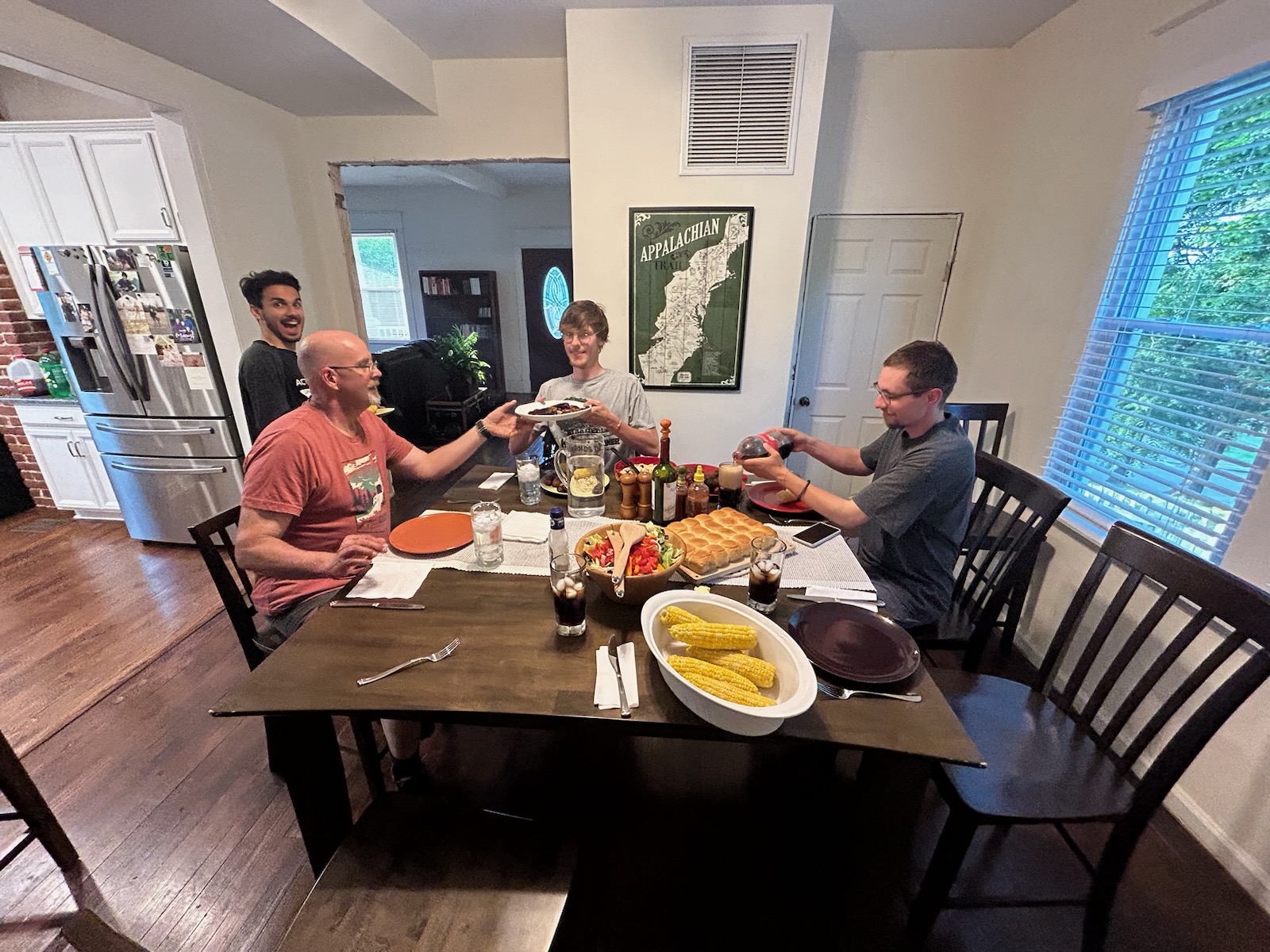 Got picked up by Survivor, who had offered to host us a few days ago. He has a nicely renovated old house in Roanoke and hosts a lot of people there. Had a nice evening with homemade food and nice conversation. Prof X was there as well.