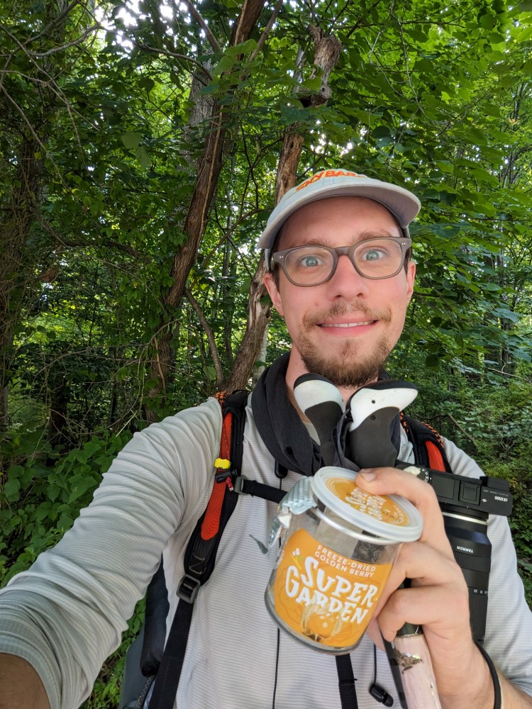 Trail magic in the form of freeze dried physalis in the valley. Hot weather, but hazy again.