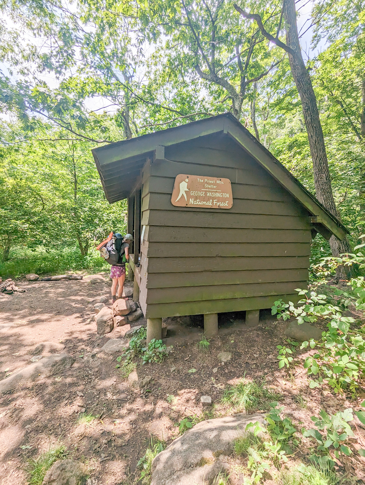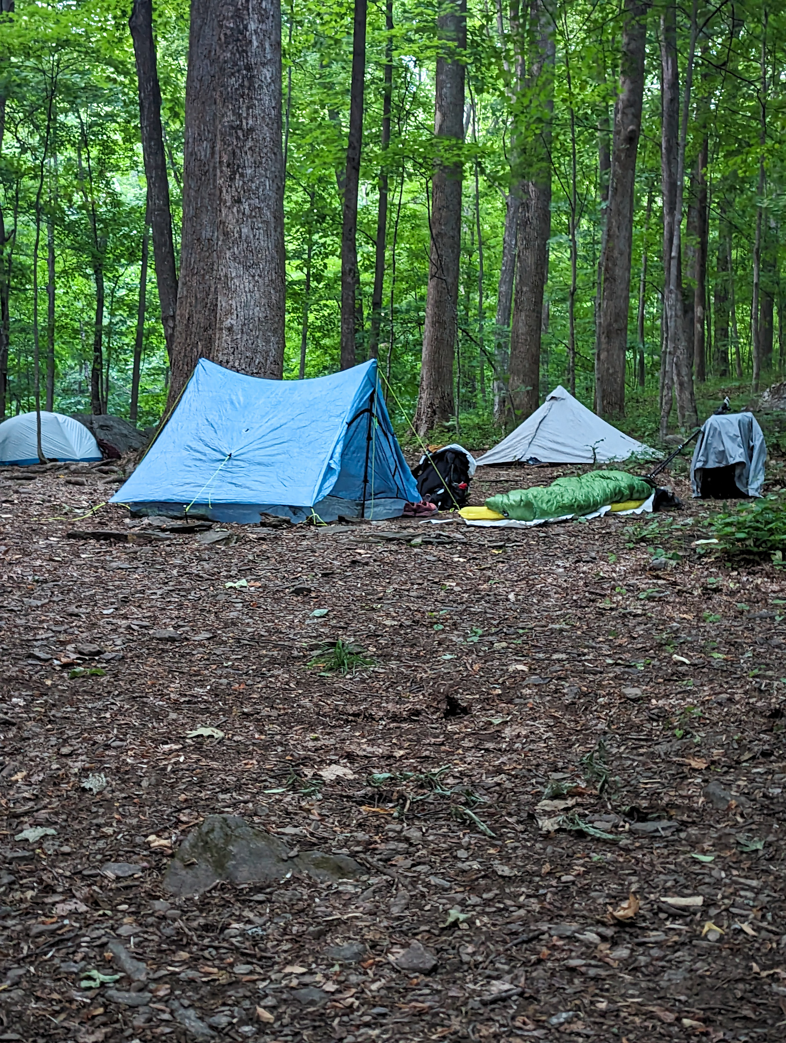 Set up camp at Harpers Creek Shelter, which is packed with dayhikers due to the Juneteenth weekend.