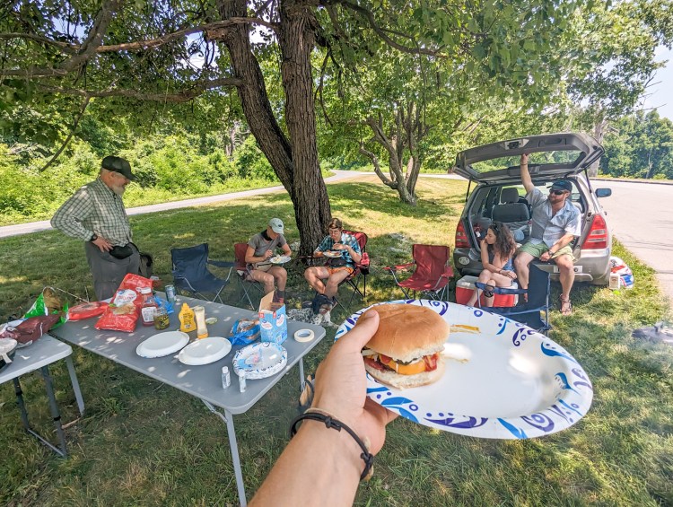Being low on food, trail magic by Holy Roller and Tuna at noon came in exceptionally handy. They did go big and got burgers, chips, fruit and then some. The homemade banana pudding was to die for. I even got to pack out some of it in a Talenti jar for tomorrow.