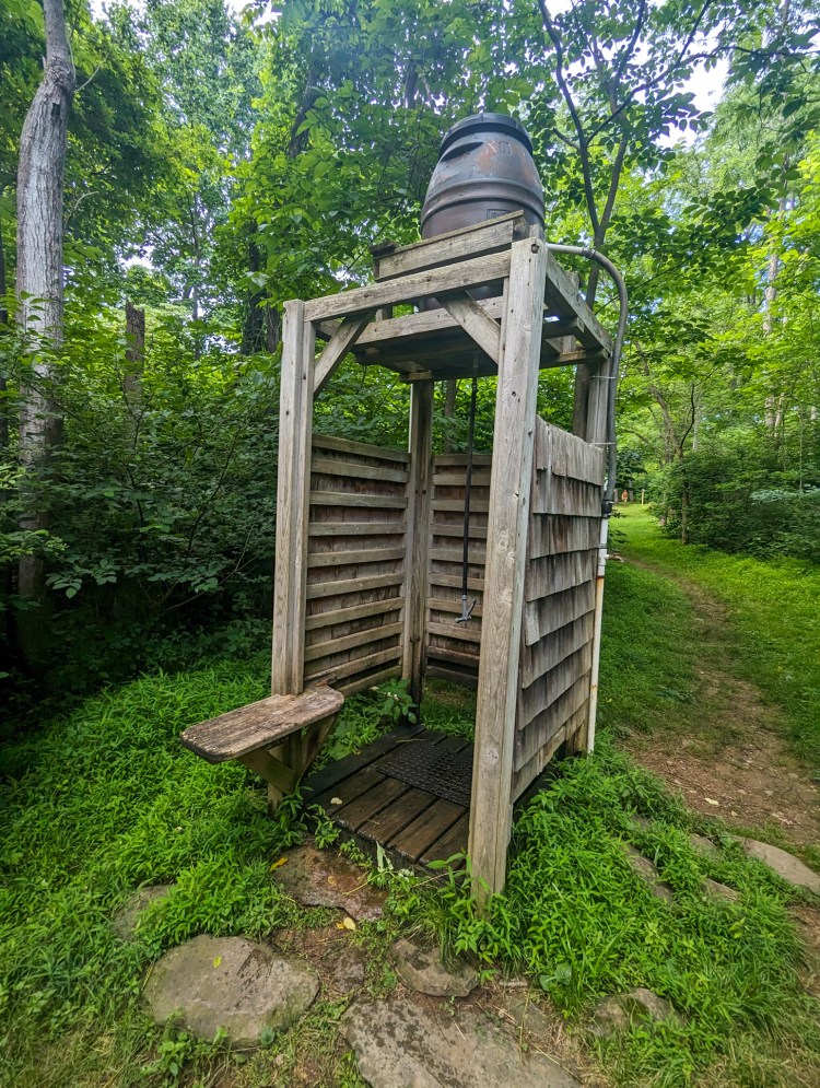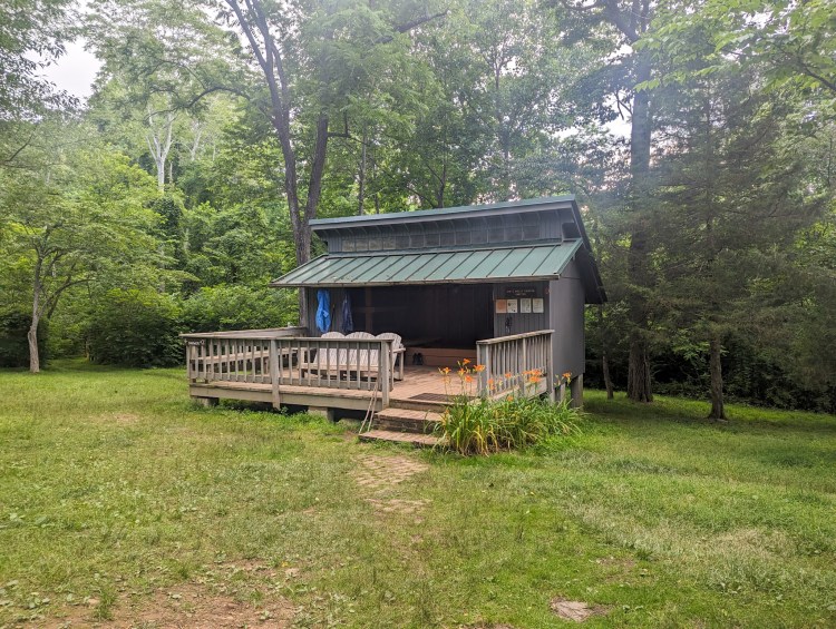 Nicest shelter ever. Porch, dining gazebo, flowers, and a shower. Shared the shelter just with Buckeye Boy. Few people tenting/hammocking as well.