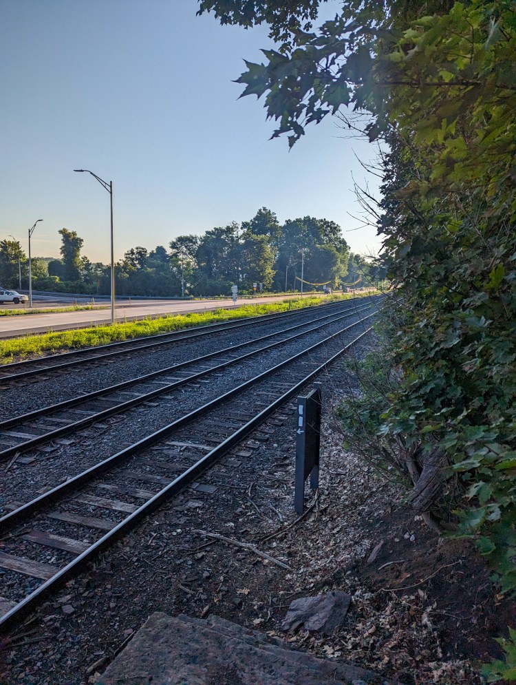 Got over the train tracks just before a long one came through. A lot of dry, rocky ridges today.