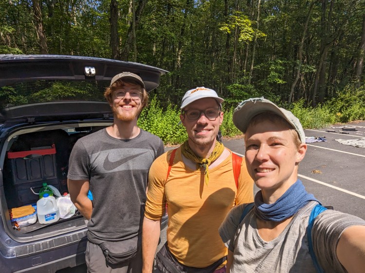 Got Buckeye Boy set up in the car, then drove off to the trailhead. Got trail magic there from Moose, who had an awesome spread of food and gear there.
