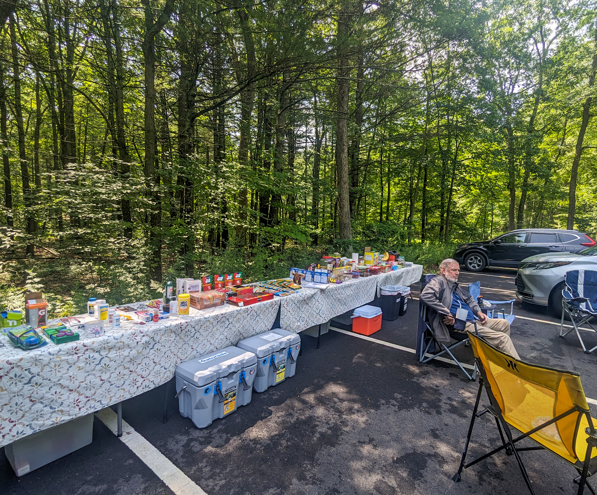 Got Buckeye Boy set up in the car, then drove off to the trailhead. Got trail magic there from Moose, who had an awesome spread of food and gear there.