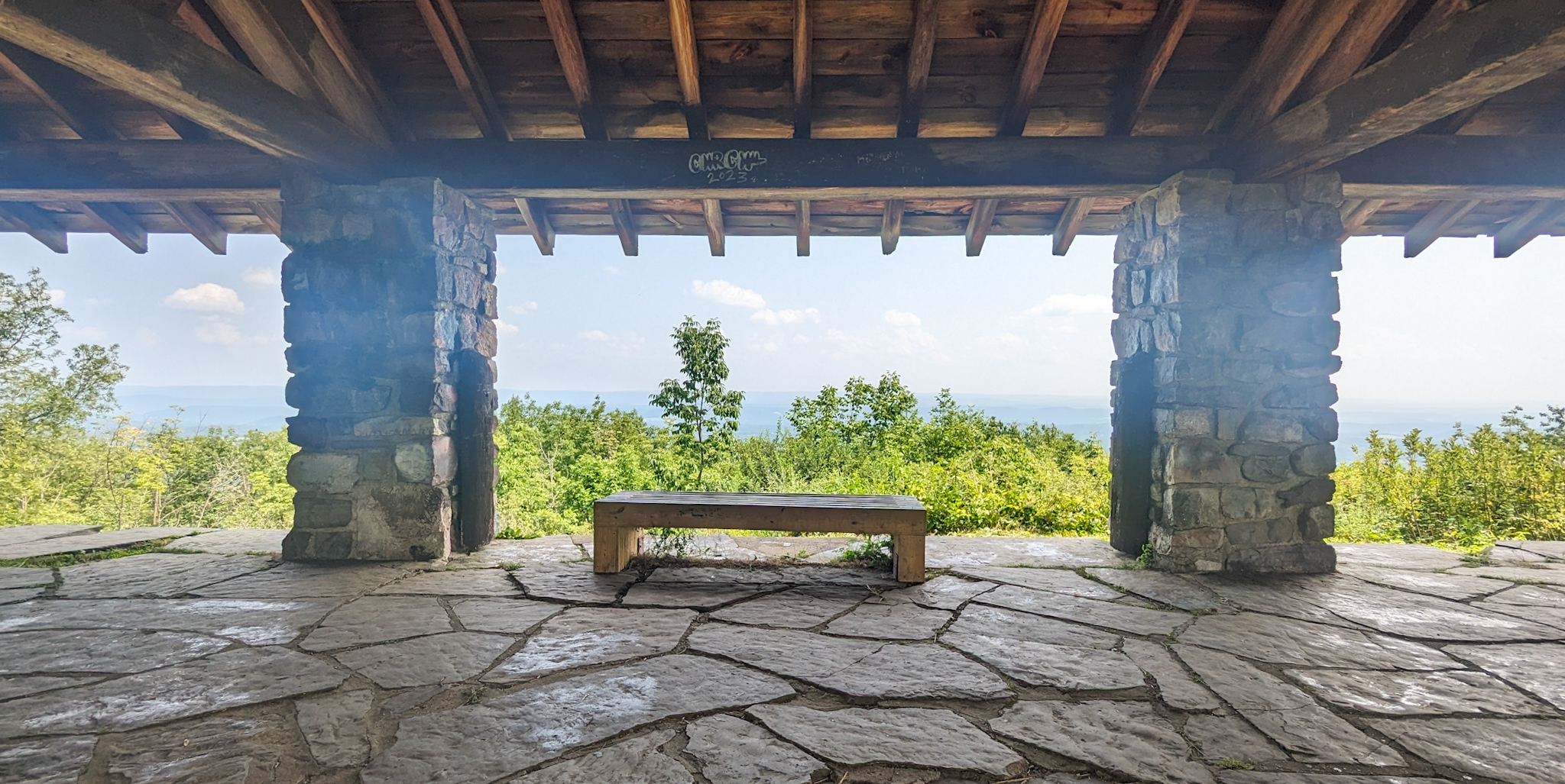 Did a relaxed slackpack to High Point State Park, which marks the highest point in NJ. Buckeye Boy met us there to give us back our backpacks, then 0.5 miles more to the High Point Shelter, which we had to our own.