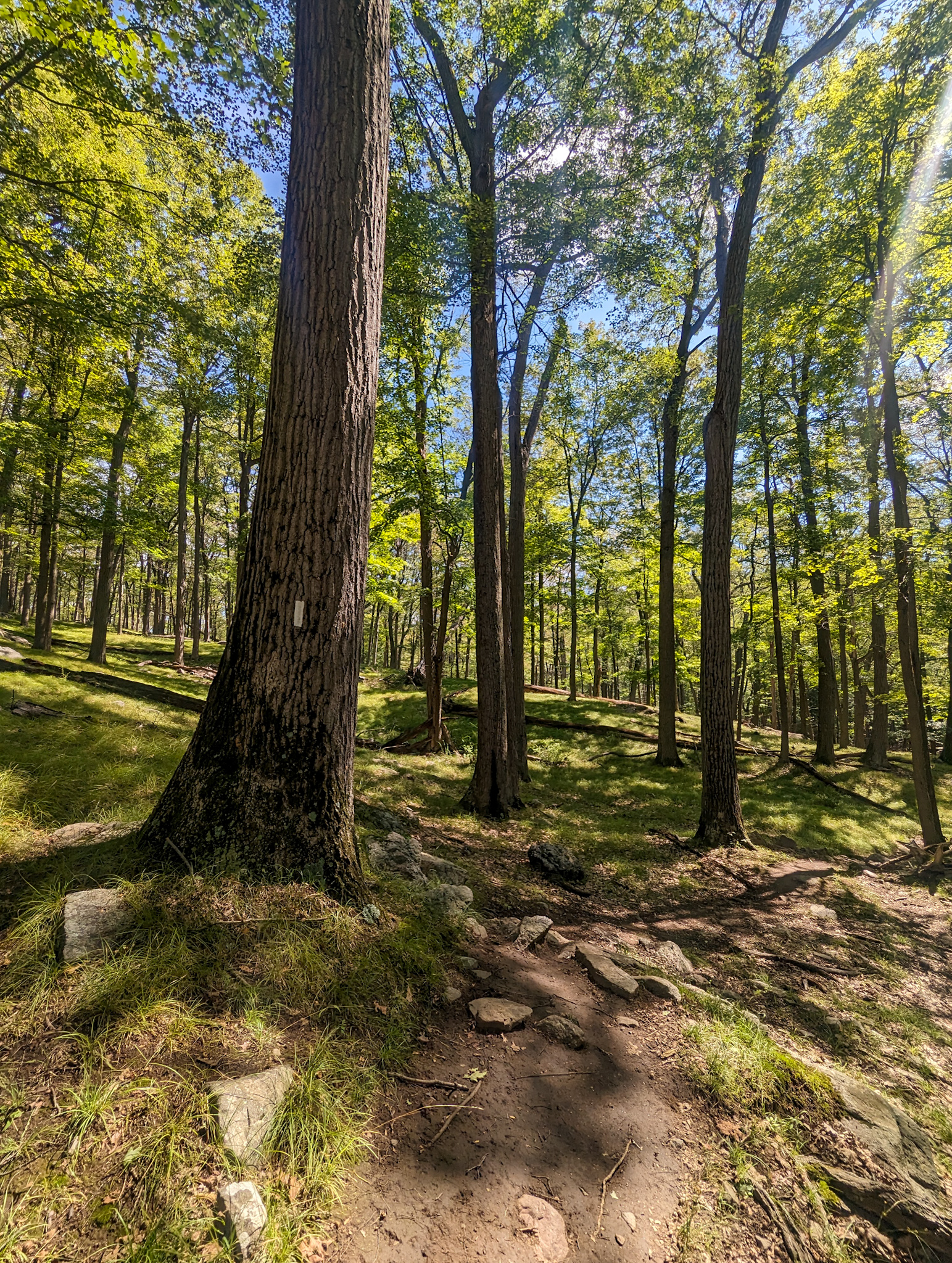 More NY hiking. Big rocks, slanted bridges. Almost walked by the opportunity to see the NYC skyline from trail. Had to tell another hiker (Straight Edge) to look up from the trail as well.