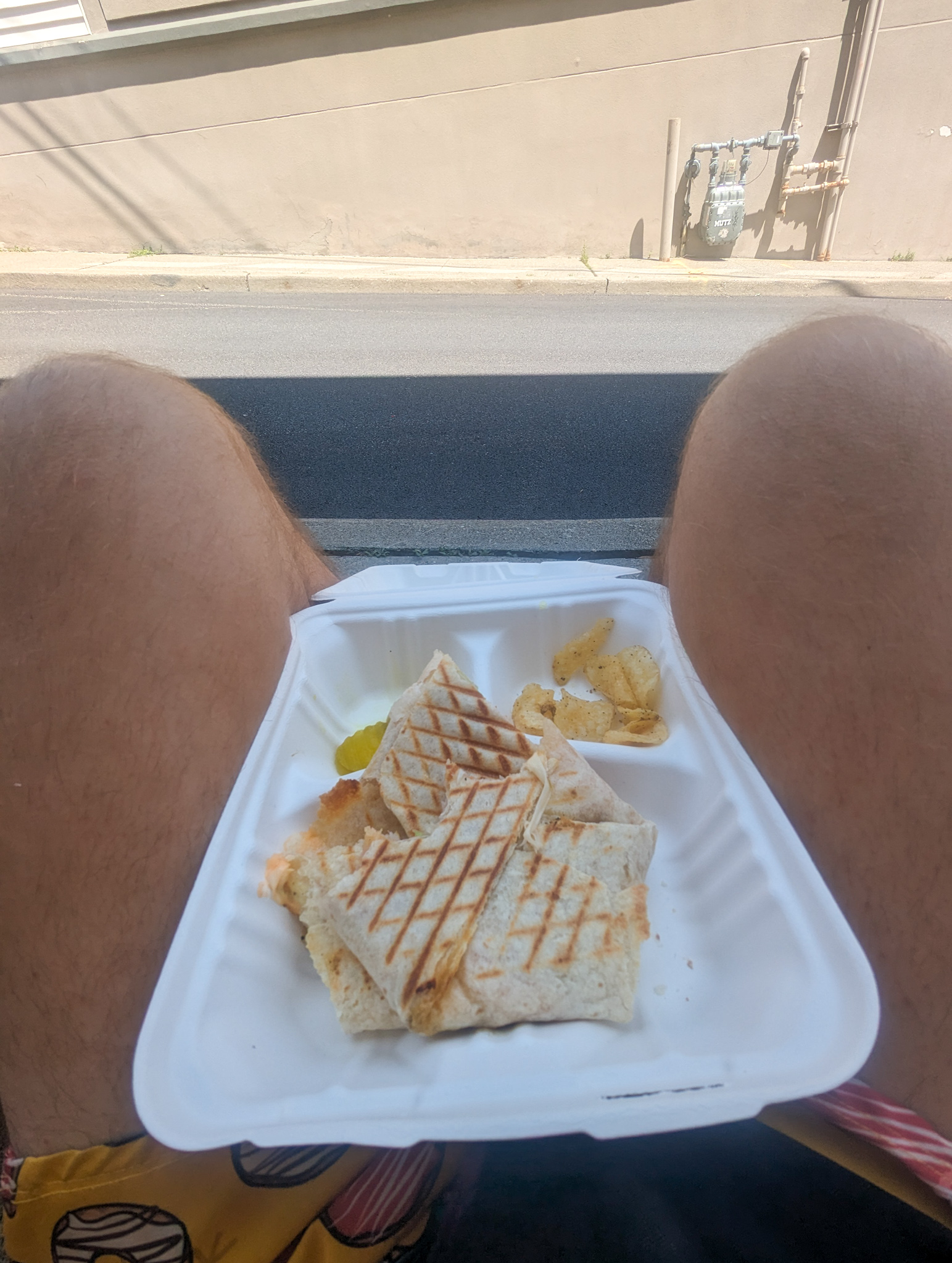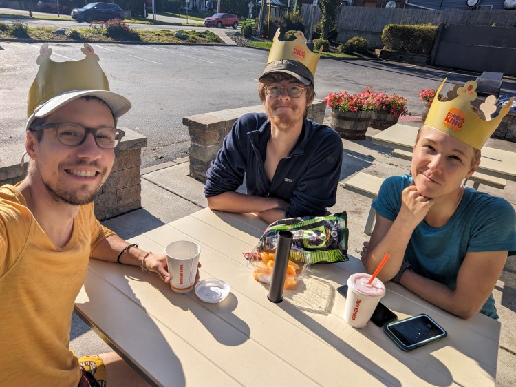 Hit Burger King (good breakfast), a bakery (good choccy croissants) and a wrap shop (good toasted wraps).