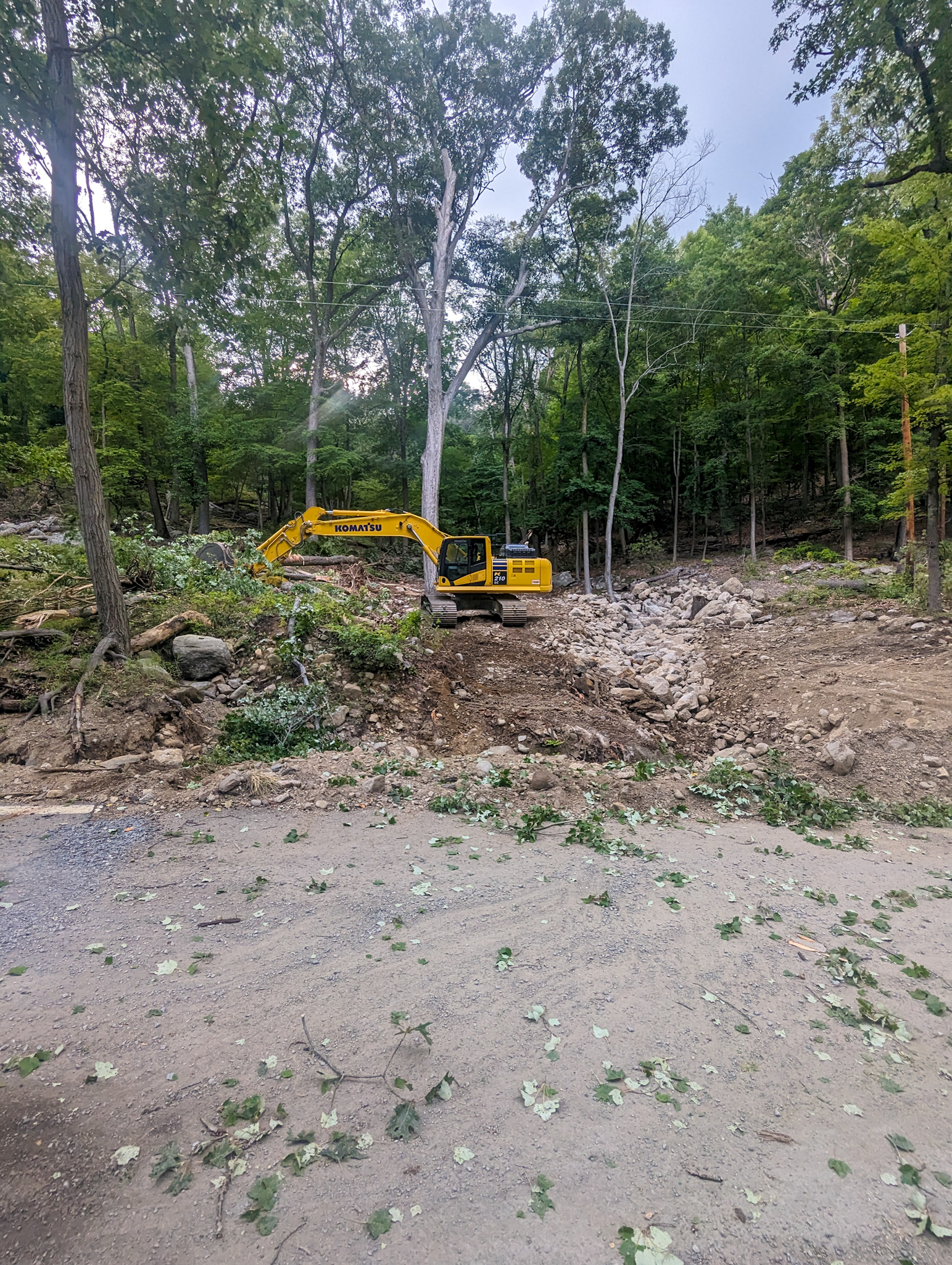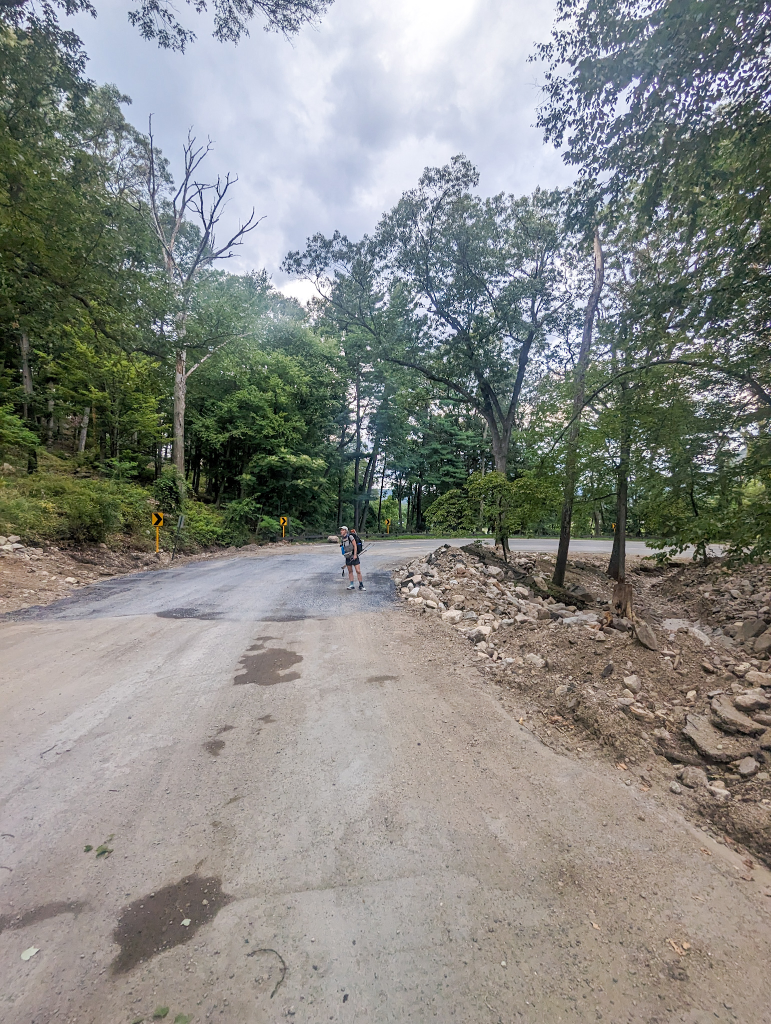 Walked back to the trail and decided not to go over Bear Mountain, but use the current bypass, which is a bit of a roadwalk. Road damage and construction work on the roadwalk.