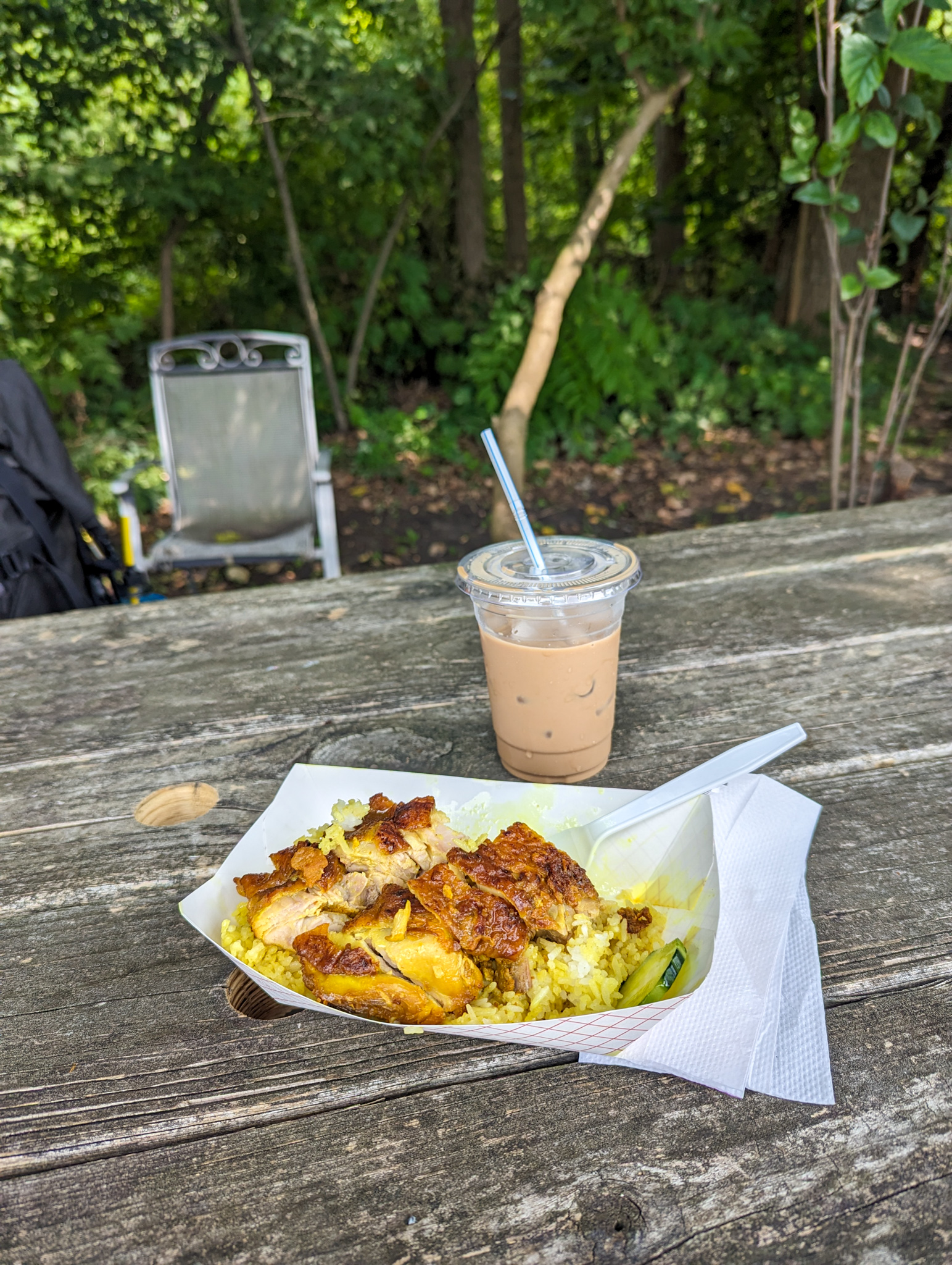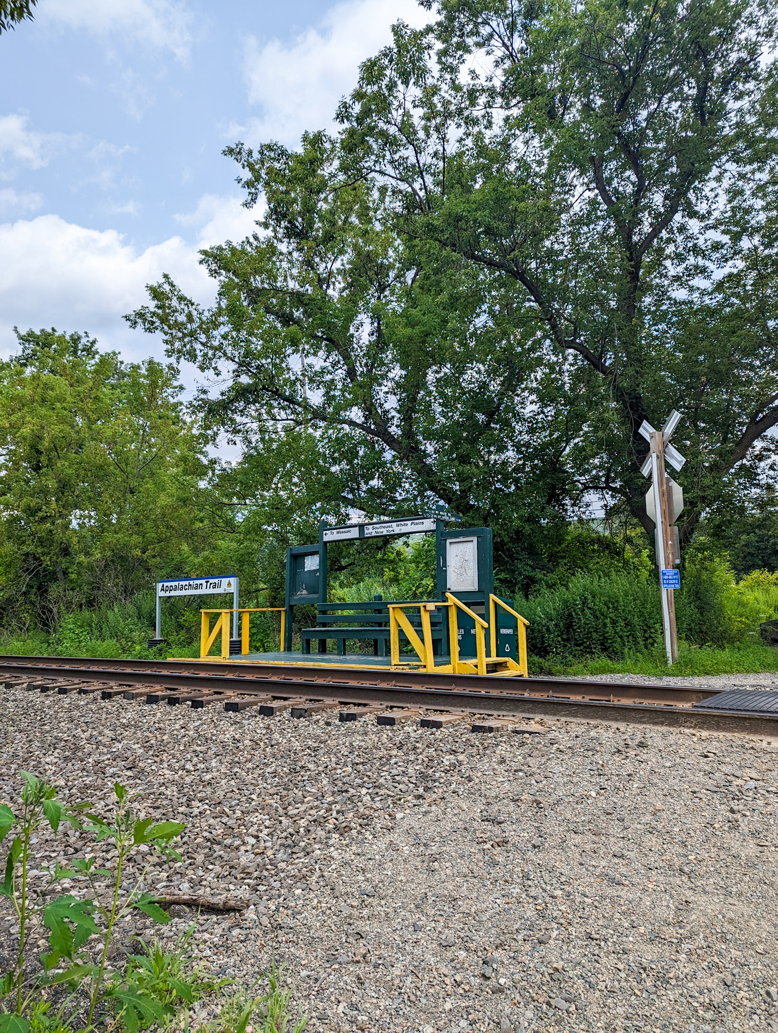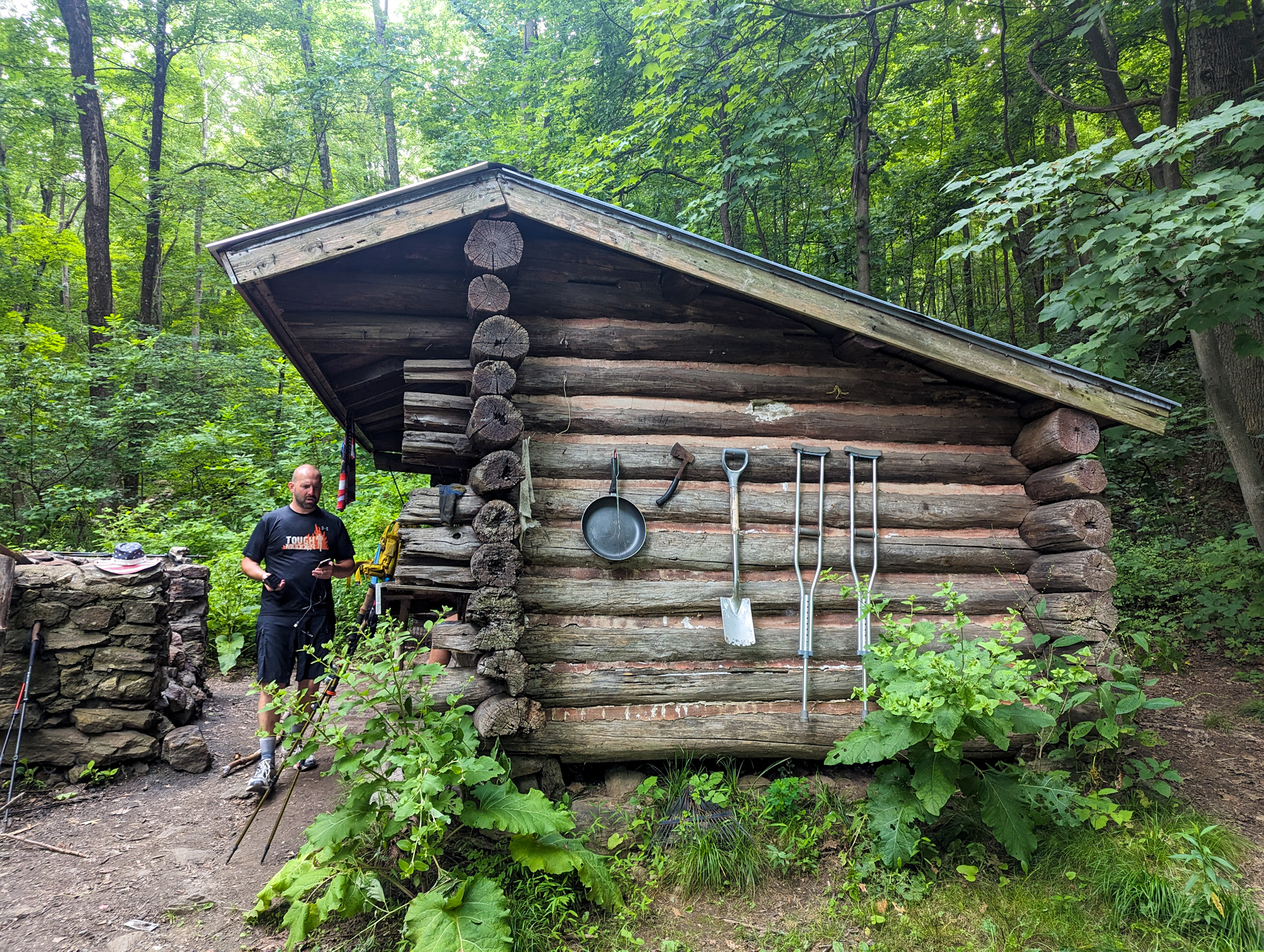 Left the State Park early, then made good pace to the shelter. Got candy from a biker guy, crossed a railroad at the AT station, got the last NY food cart meal at a road crossing.