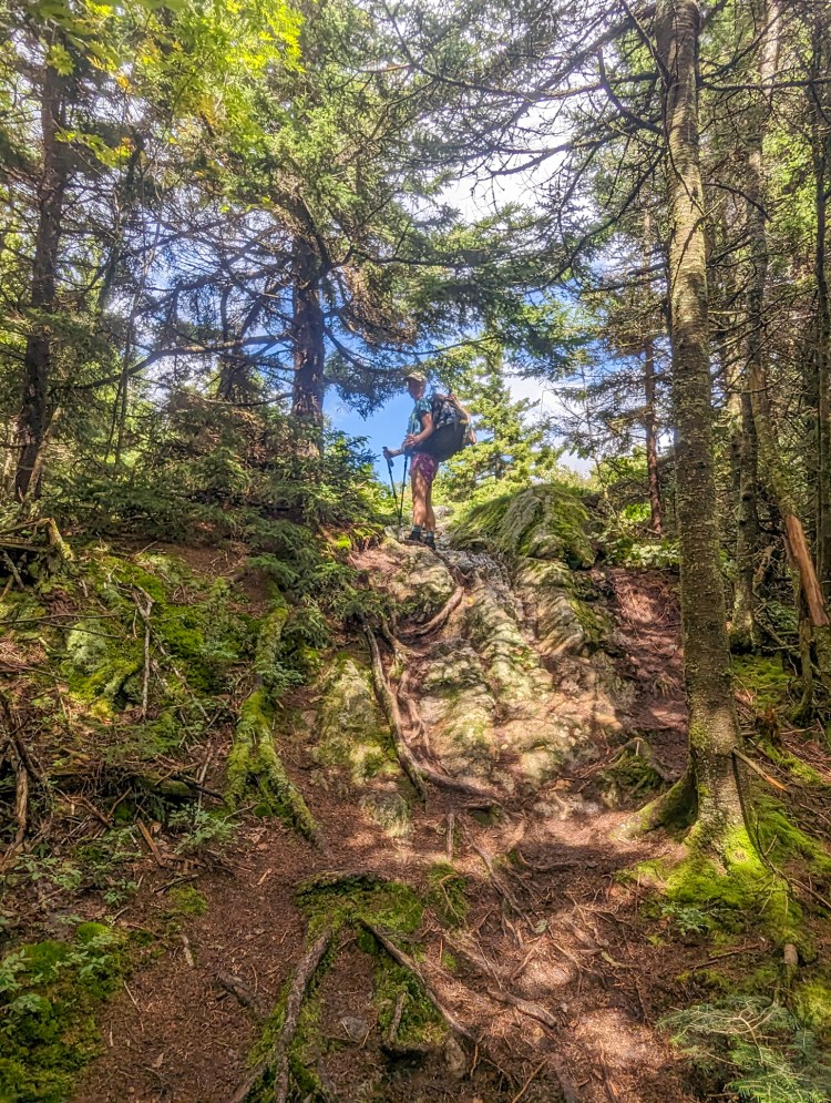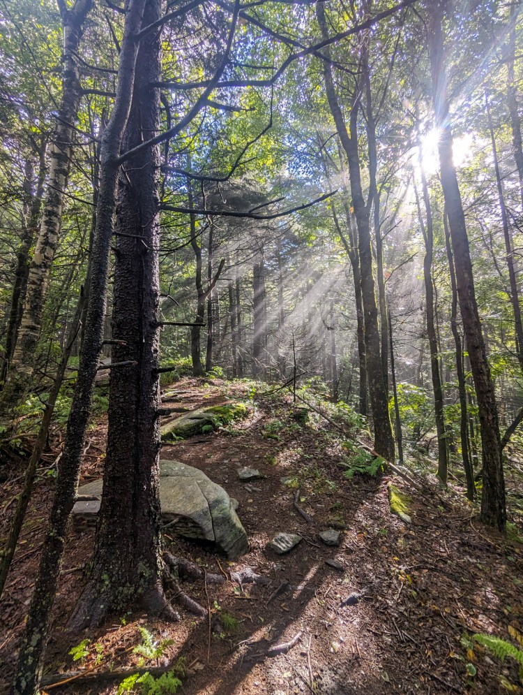 Terrain got noticeably rockier, climbs got steeper. Probably a small taste of the Whites. Made it up Smarts Mountain, climbed up the fire tower, had great views.