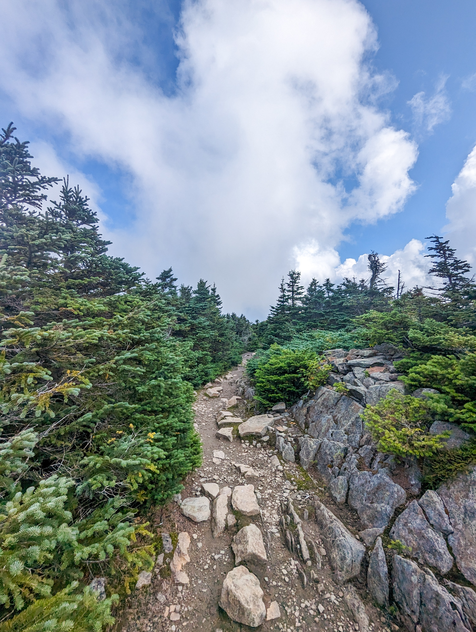 Hiked out at 8:15, did a creek crossing, passed the 1800 mile marker, then slow and steady up Mount Moosilauke. First of the White Mountain 4000ers.