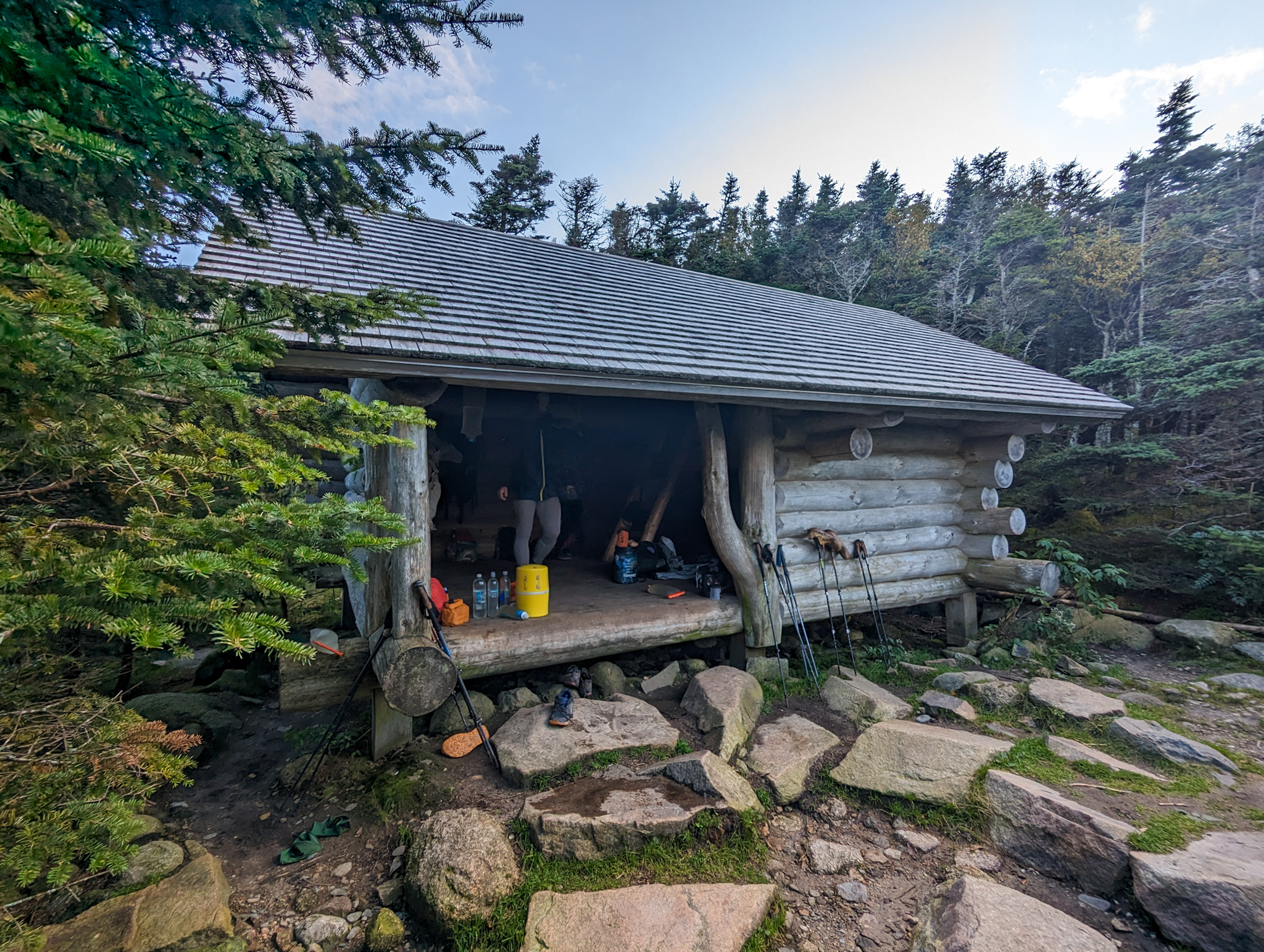 Went on and over Garfield, where our goal for the day is. First time in one of the AMC campsites/shelter. Very nicely done; has a friendly caretaker (Peter), who got us the AMC thru hiker card, which gives us a heavy discount on the AMC facilities, and free soup in the huts.