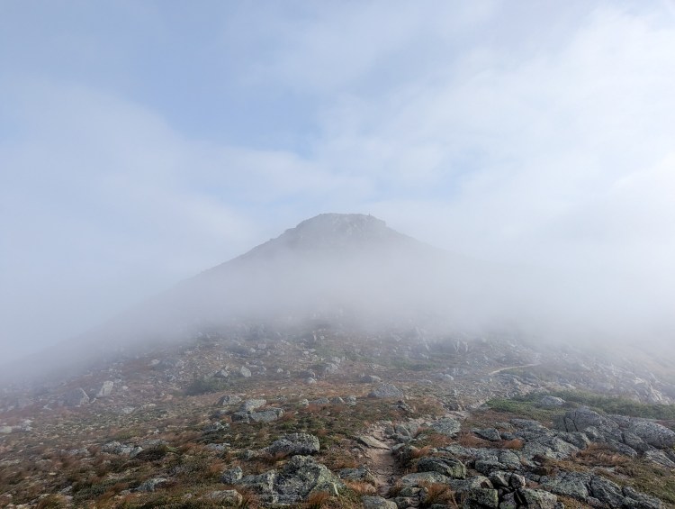 Were in and out of the clouds the whole day, which made for great views, even if we didn’t have any from Washington itself. Was a long and hard day, and we’re almost finished with the Presidentials now. Only five flat miles left for tomorrow, then on to the Wildcats.