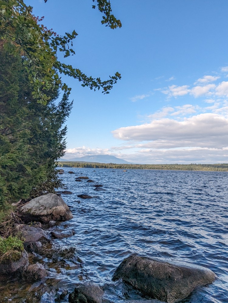 Decided to do 22 miles today, to set us up nicely for the Katahdin summit day. Got our first good view of Katahdin towering over one of the many Maine lakes.