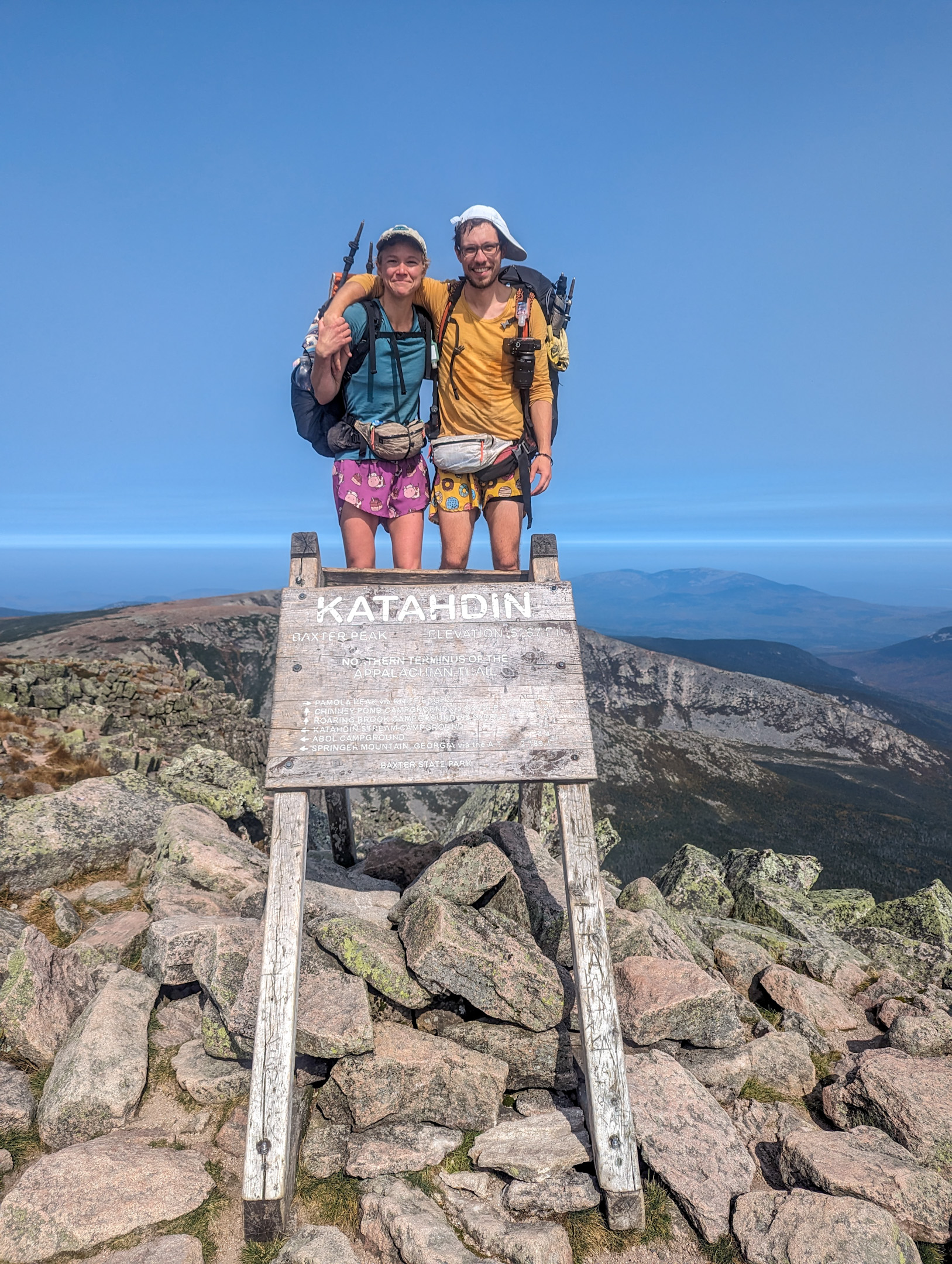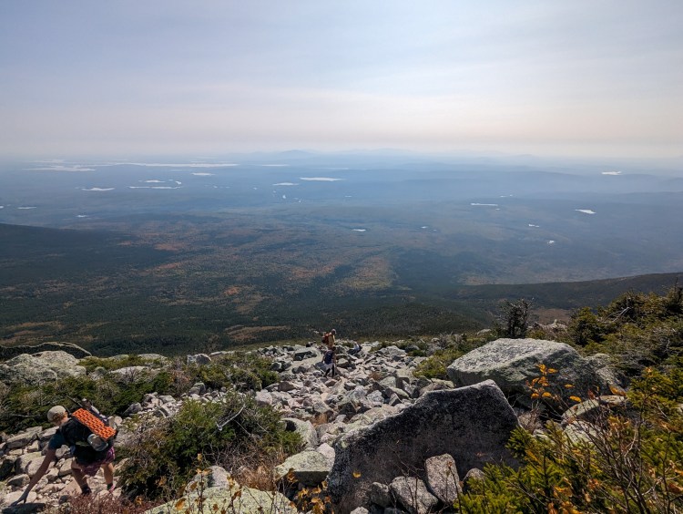 Went down Abol Trail, which took a long time, exposed to the sun, down a big rocky descent. Were greeted at Abol Campground with trail magic, and got a hitch back to Katahdin Stream.