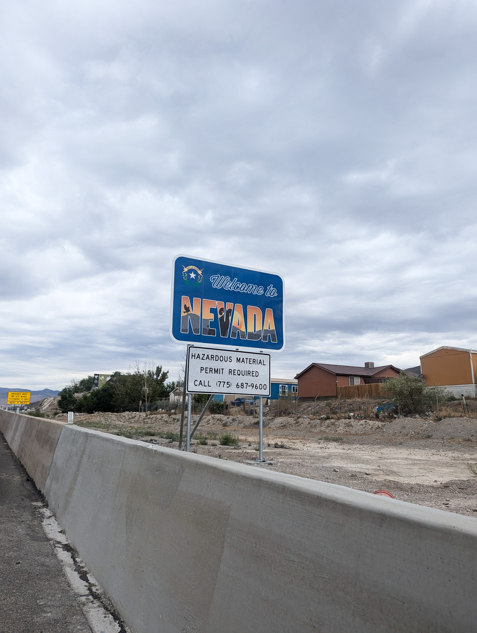 So today we started the long drive over to California. Some 570 miles through mostly the Nevada desert. Starting going west over the salt flats, then entering Nevada and a new time zone. Many miles over empty highways, great views of the desert, National Forests, long stretches, going straight as an arrow, then winding roads over lonely mountain ranges.