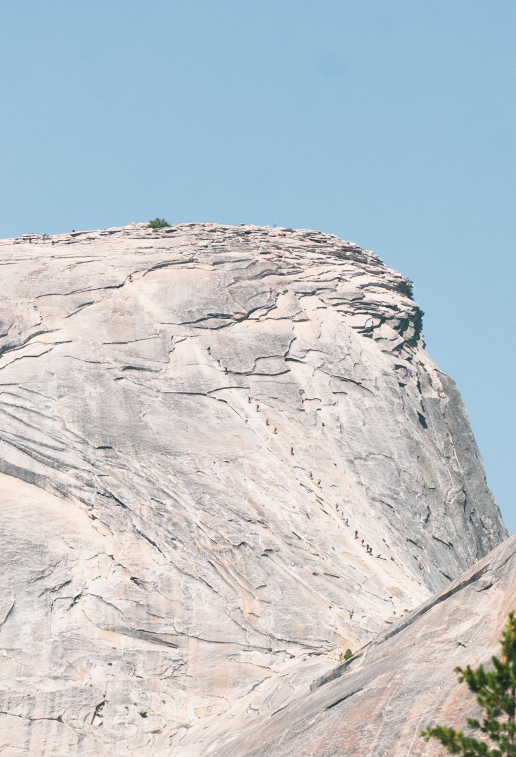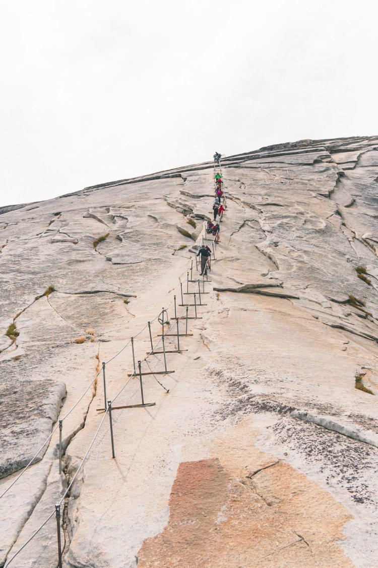Arrived at the sub dome, which we climbed quickly, and were at the base of the cables. Being up at the sub dome is already impressive, but then there’s quite a bit of vertical gain left going up all the way. Pictures of the cables don’t really do it justice. It’s wild how steep parts of that thing are. People should not be allowed to do this.